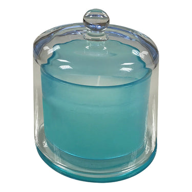 Bougie en pot de verre avec couvercle en dôme, 11cm x 14cm.