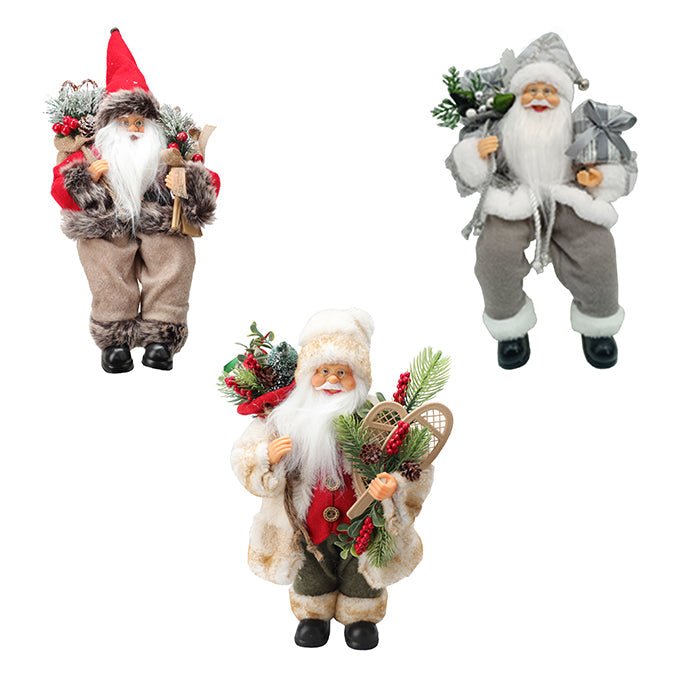 Père Noël assis en tissu – 30 cm (3 modèles assortis : beige/blanc, rouge/marron, blanc/argenté)