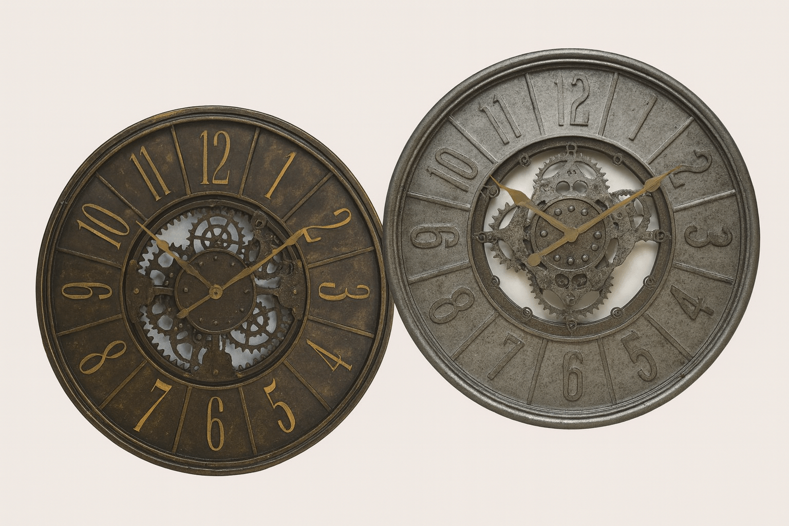 Ajoutez une touche d'audace et d'intemporalité à votre décoration intérieure avec ces grandes horloges murales d'inspiration vintage . Avec leur design complexe en engrenages et leurs finitions rustiques, ces horloges allient charme industriel et élégance classique. Leur diamètre surdimensionné de 91 cm en fait un élément central de toute pièce, qu'elle soit placée dans un salon, une salle à manger ou un bureau.