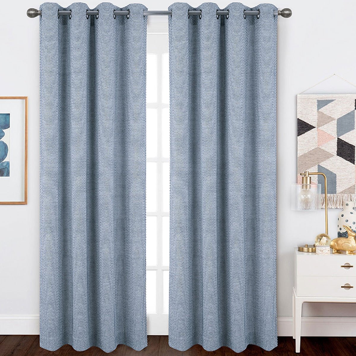 The Lauren Taylor CLAIRE Chenille Jacquard Grommet Top Panels are a stylish and sophisticated window treatment option.The grommet top design allows for easy installation on any standard curtain rod, while the light filtering feature provides privacy without blocking natural light. The CLAIRE panels offer a luxurious and fashionable window covering solution that can complement a variety of decor styles.