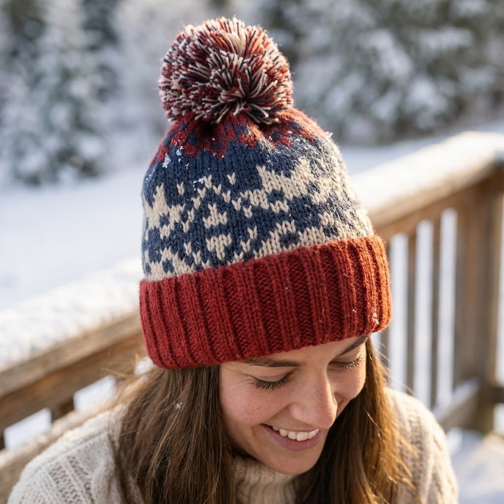 Ajoutez une touche chaleureuse et authentique à vos tenues hivernales avec cette tuque tricotée à motif Fair Isle. Confectionnée dans un tricot doux et isolant, elle est dotée d’un revers côtelé assurant un ajustement confortable. Son pompon apporte une note ludique et intemporelle, parfaite pour la saison froide.