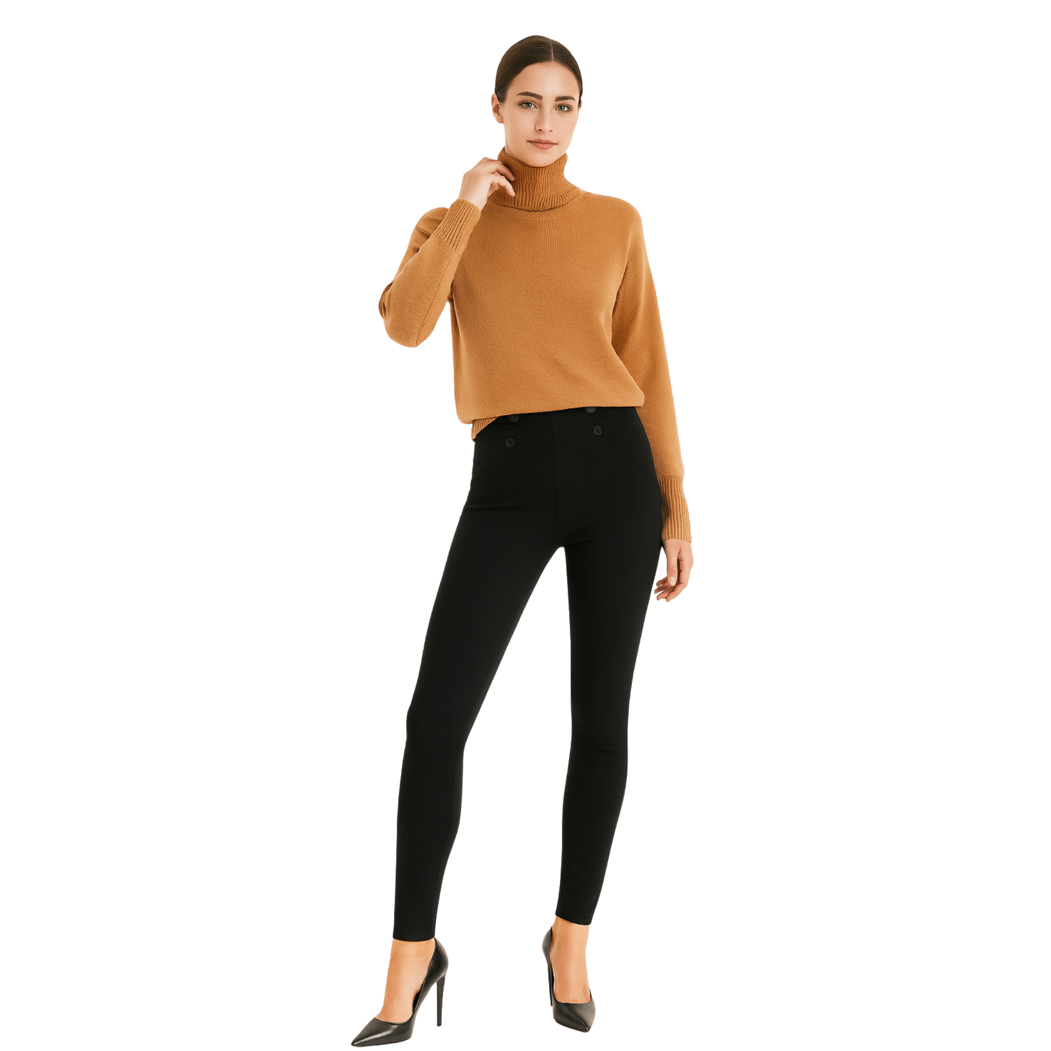 Élégant, moderne et incroyablement polyvalent, ce pantalon taille haute offre une silhouette flatteuse tout en assurant un confort optimal. Son tissu extensible épouse délicatement les formes, tandis que les boutons décoratifs à la taille apportent une touche chic et contemporaine. Parfait avec un pull douillet, une blouse structurée ou vos essentiels du quotidien, il passe aisément du bureau aux sorties du week-end.