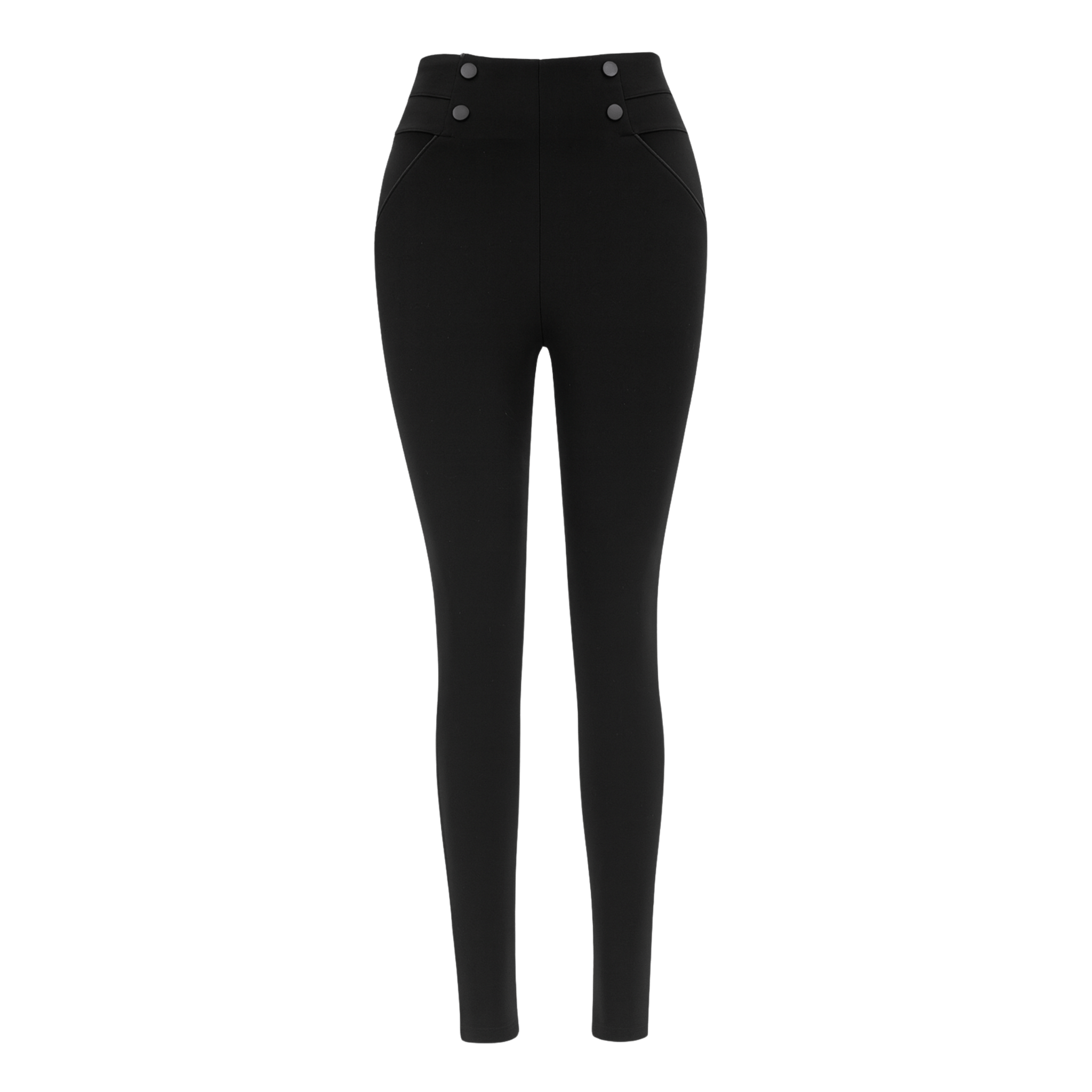 Pantalon Taille Haute Ajusté avec Détails Boutonnés