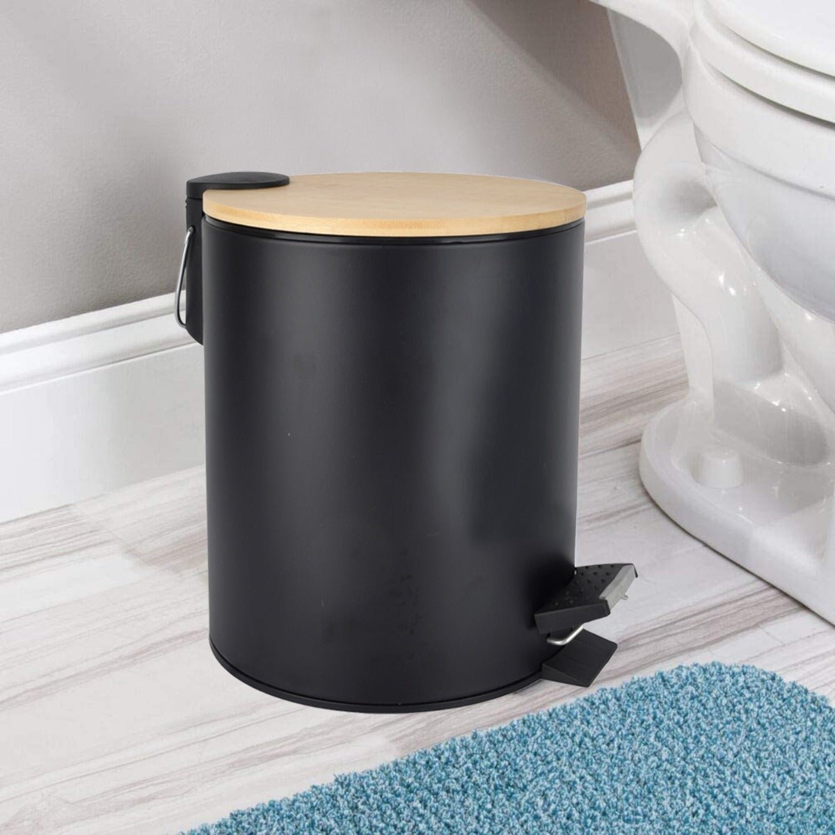 LE SPA - Poubelle en métal avec couvercle en bambou