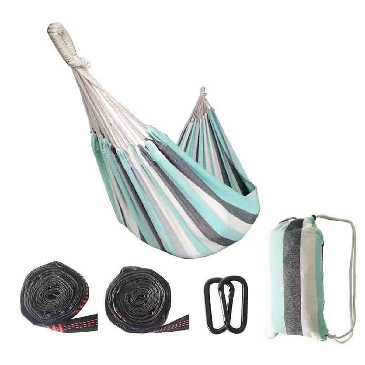 Indispensable pour votre prochain voyage en camping, ce hamac en polyester est un accessoire idéal pour le jardin ou un pique-nique dans le parc. Ce hamac est léger, facile à transporter et à installer pour votre plaisir ou pour vous détendre dans la nature.
