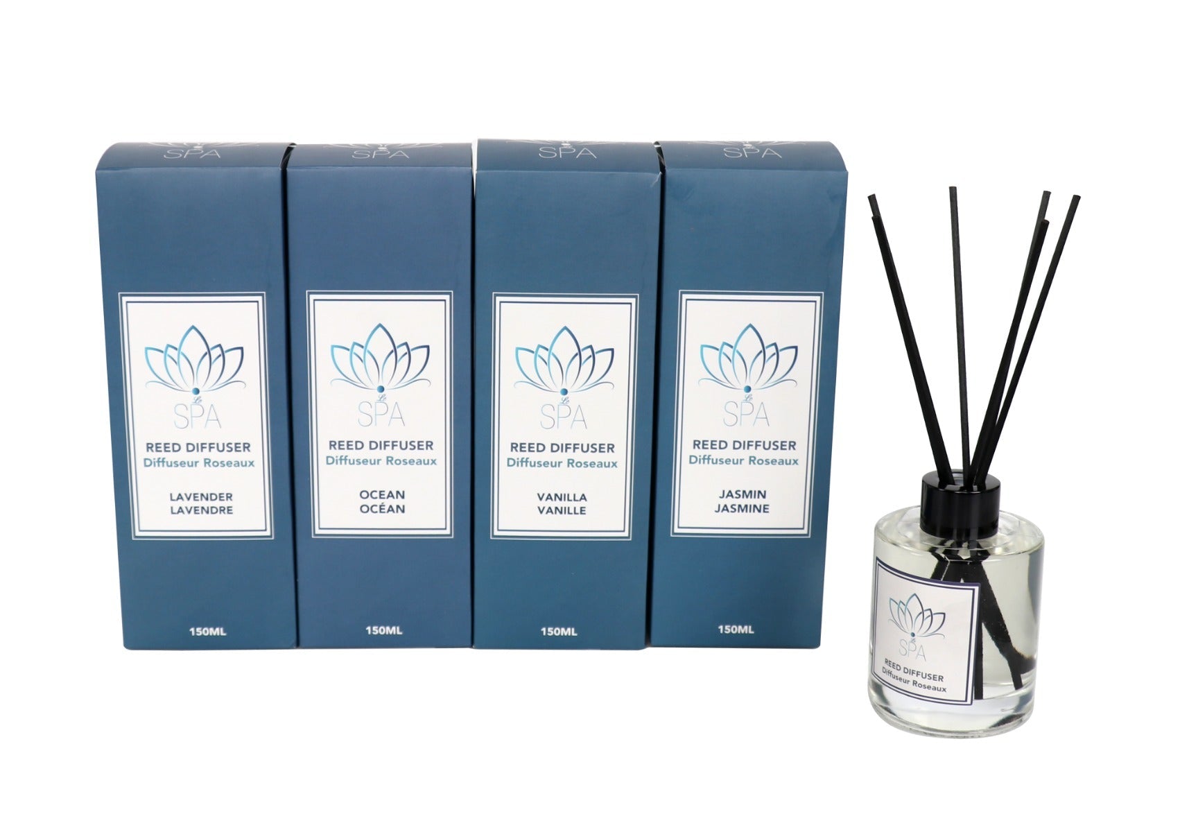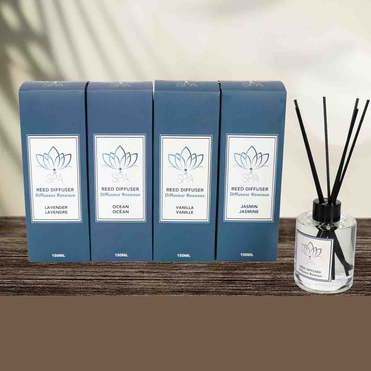 Les diffuseurs Le Spa - Reed permettent à votre maison de sentir bon tout au long de la journée. Le design simple de nos diffuseurs leur permet de s'intégrer dans n'importe quelle maison et de s'adapter à n'importe quel style. Choisissez parmi une concentration de parfum de 15 % et quatre fragrances assorties : Lavande, Océan, Vanille et Jasmin.