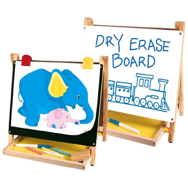 La planche à dessin double face est un jouet très polyvalent. Il comprend un plateau de rangement qui se range facilement sous le tableau pour contenir toutes les fournitures de dessin, d'écriture et de coloriage. La fonction double face permet à deux enfants de dessiner en même temps, ce qui offre des heures de divertissement aux jeunes enfants.
