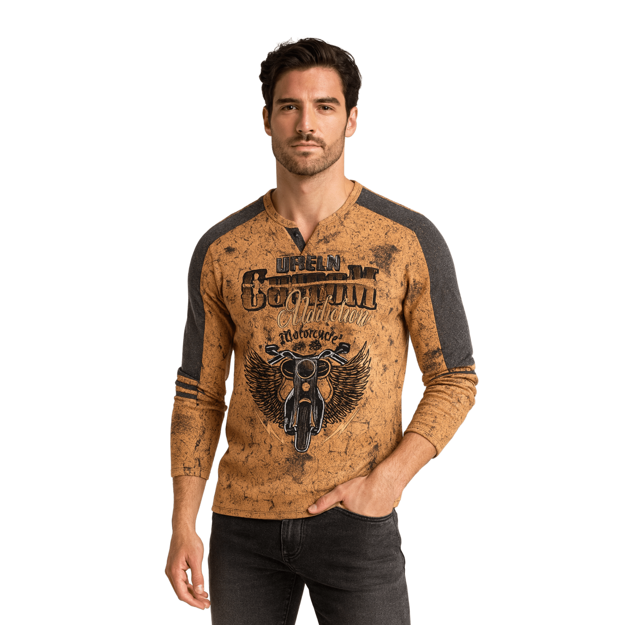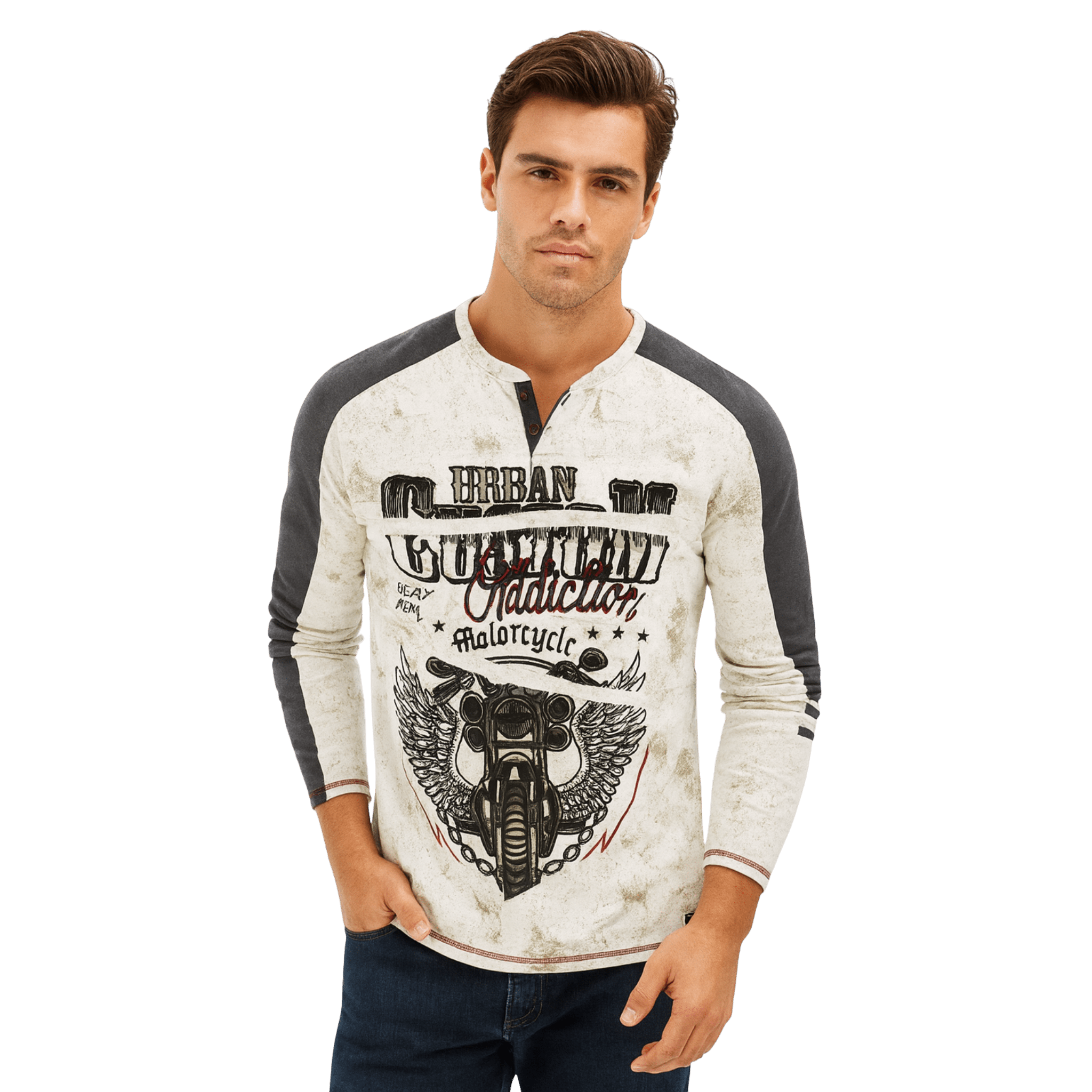 Affirmez votre style avec ce t-shirt manches longues au caractère audacieux. Son imprimé graphique d’inspiration biker apporte une touche urbaine et authentique, tandis que sa coupe droite assure un confort optimal au quotidien. Confectionné dans une matière douce et respirante, il se porte aussi bien seul qu’en superposition pour un look décontracté maîtrisé.