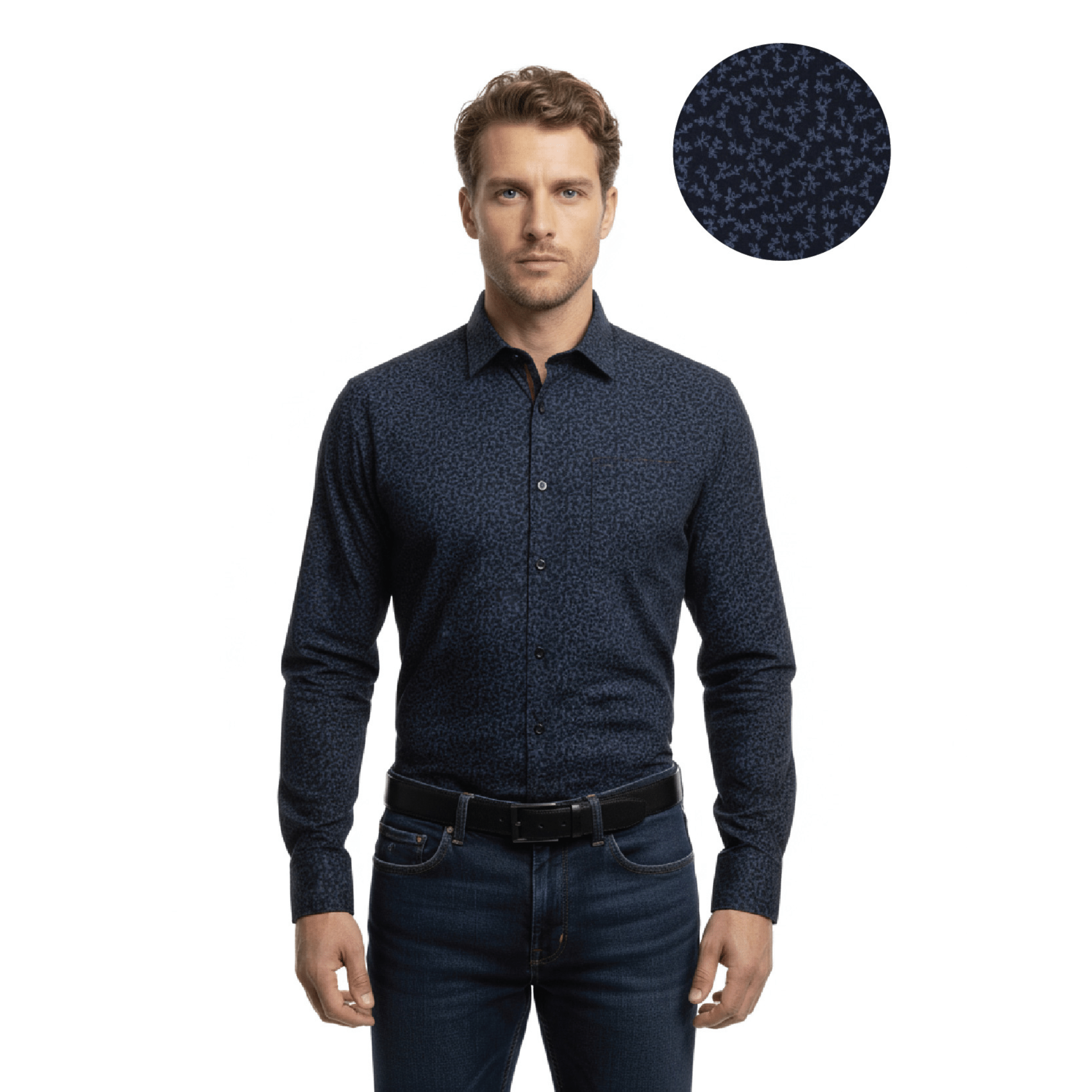 Élégante et facile à porter, cette chemise à manches longues se distingue par son imprimé subtil qui apporte du relief sans en faire trop. Sa coupe droite offre une silhouette nette et contemporaine, idéale pour un look soigné au quotidien. Confectionnée dans un tissu doux et agréable, elle assure un confort durable tout en conservant une allure raffinée.