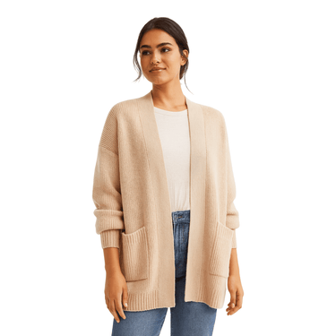 Maison Boutique Nouveautés Cardigan Beige à Devant Ouvert en Tricot
