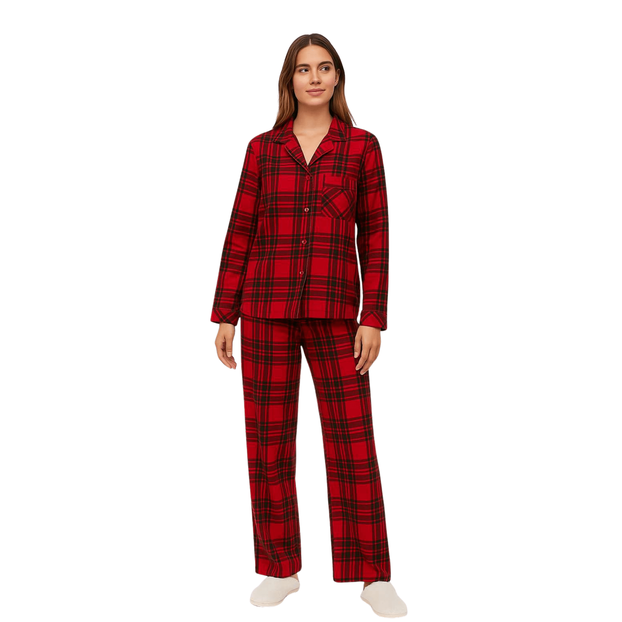 Classique et confortable, cet ensemble de pyjama à carreaux rouges allie douceur et style intemporel. La chemise boutonnée à col à revers et poche poitrine se marie parfaitement avec le pantalon droit pour un confort absolu. Léger et respirant, c’est le choix idéal pour des nuits paisibles ou des matinées détendues à la maison.