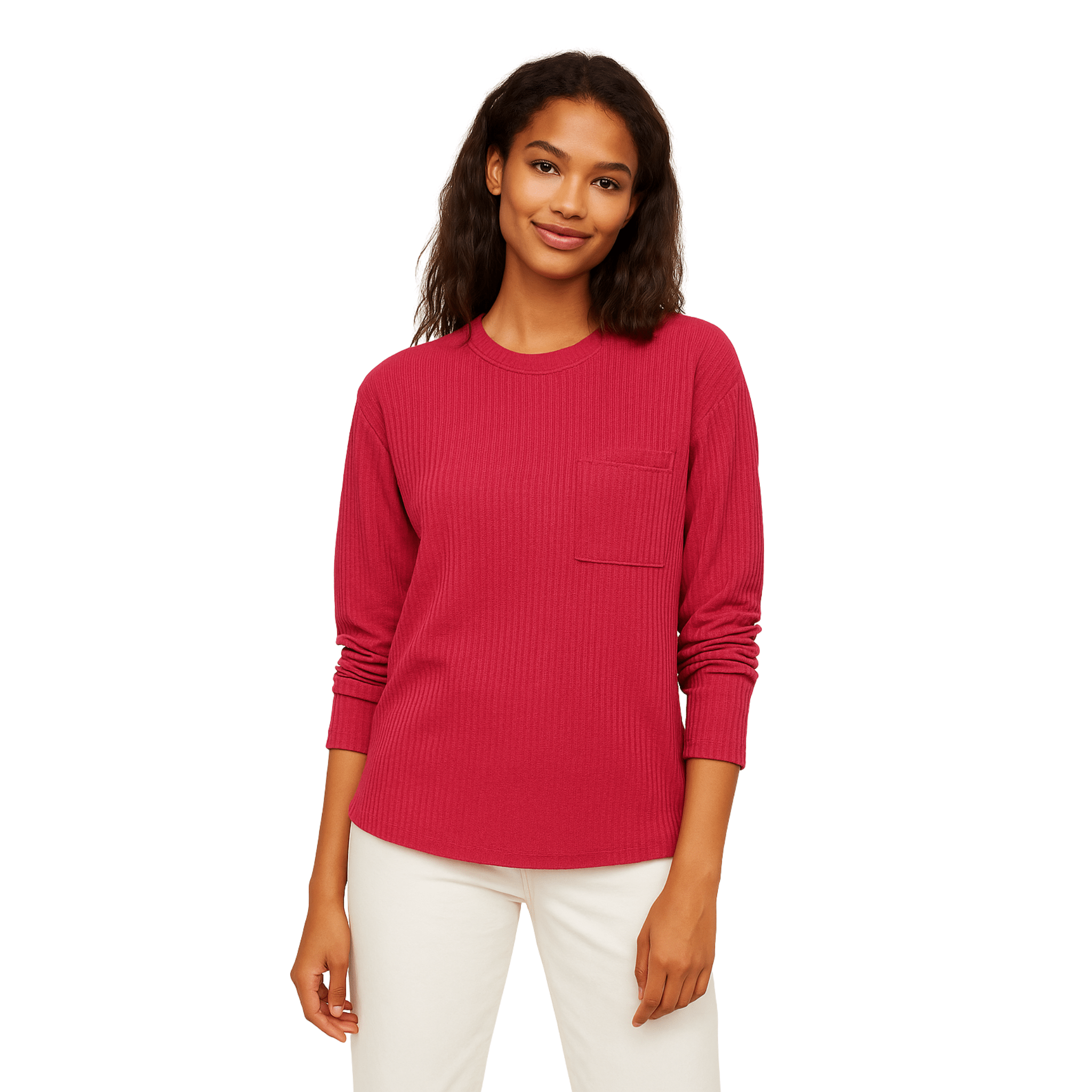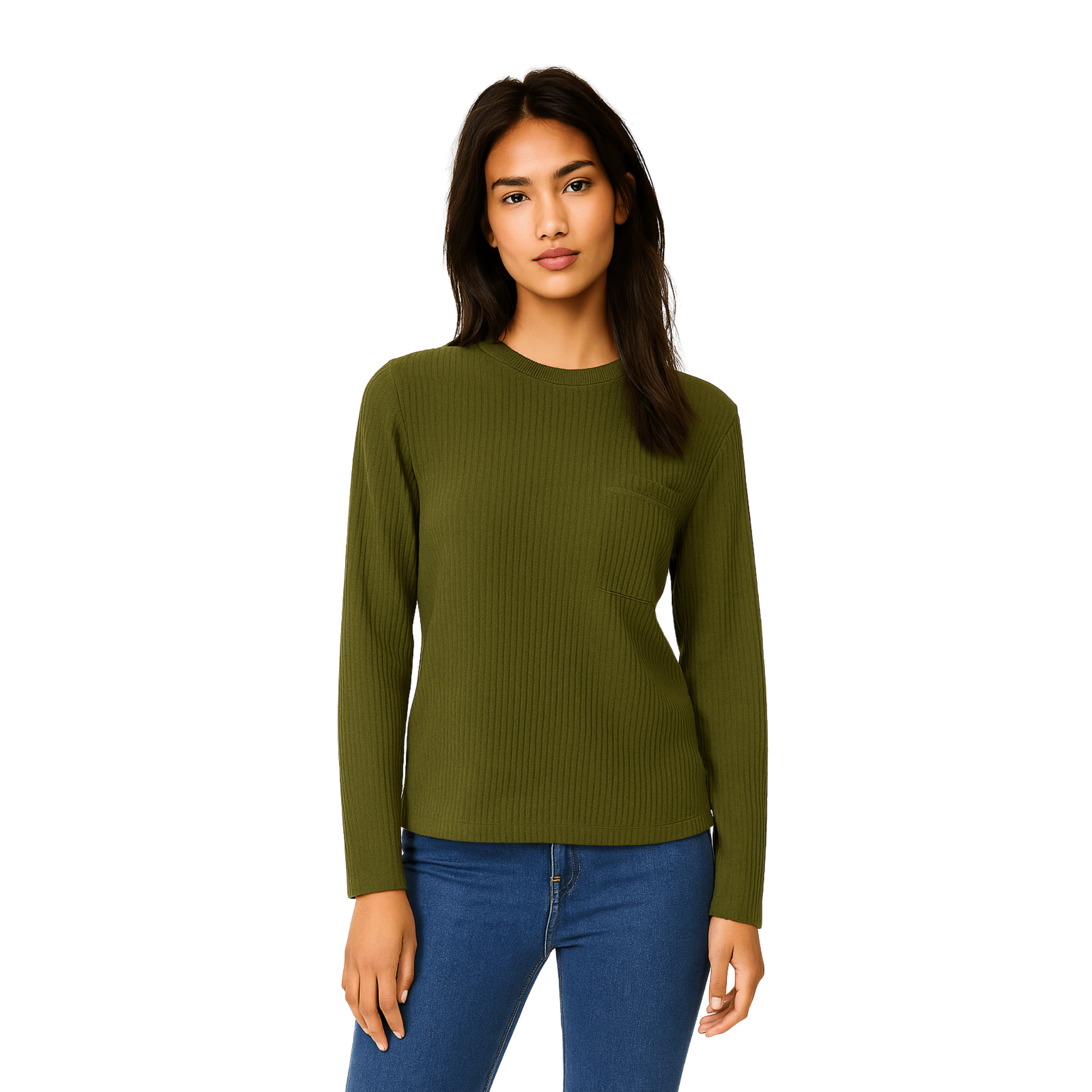 Ajoutez une touche d’élégance décontractée à votre garde-robe avec ce haut côtelé à manches longues, une pièce essentielle qui allie confort et style au quotidien. Son tricot doux et texturé offre une allure moderne et minimaliste, tandis que sa coupe décontractée assure une grande liberté de mouvement. La petite poche poitrine apporte une finition subtile, parfaite pour créer des tenues simples et raffinées.