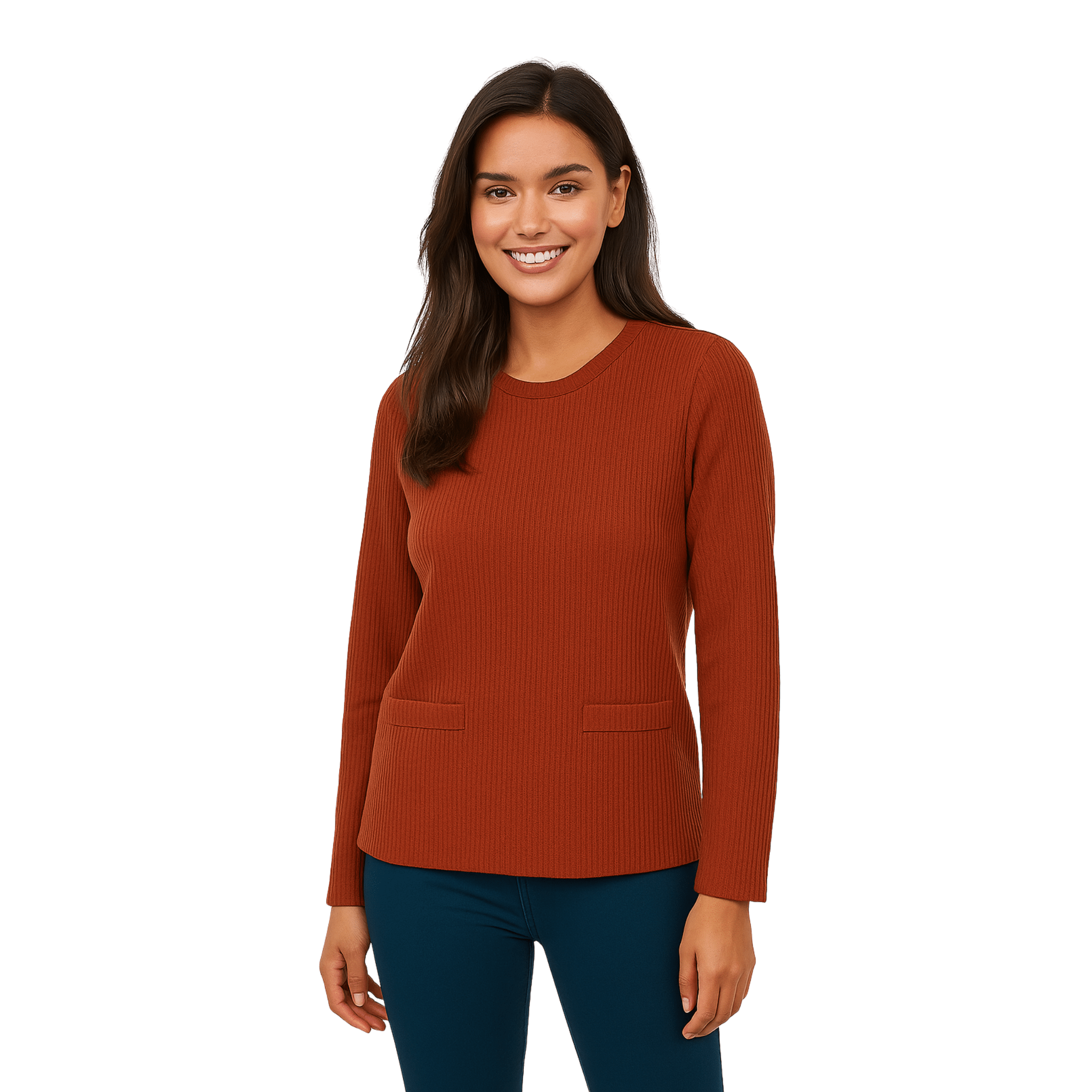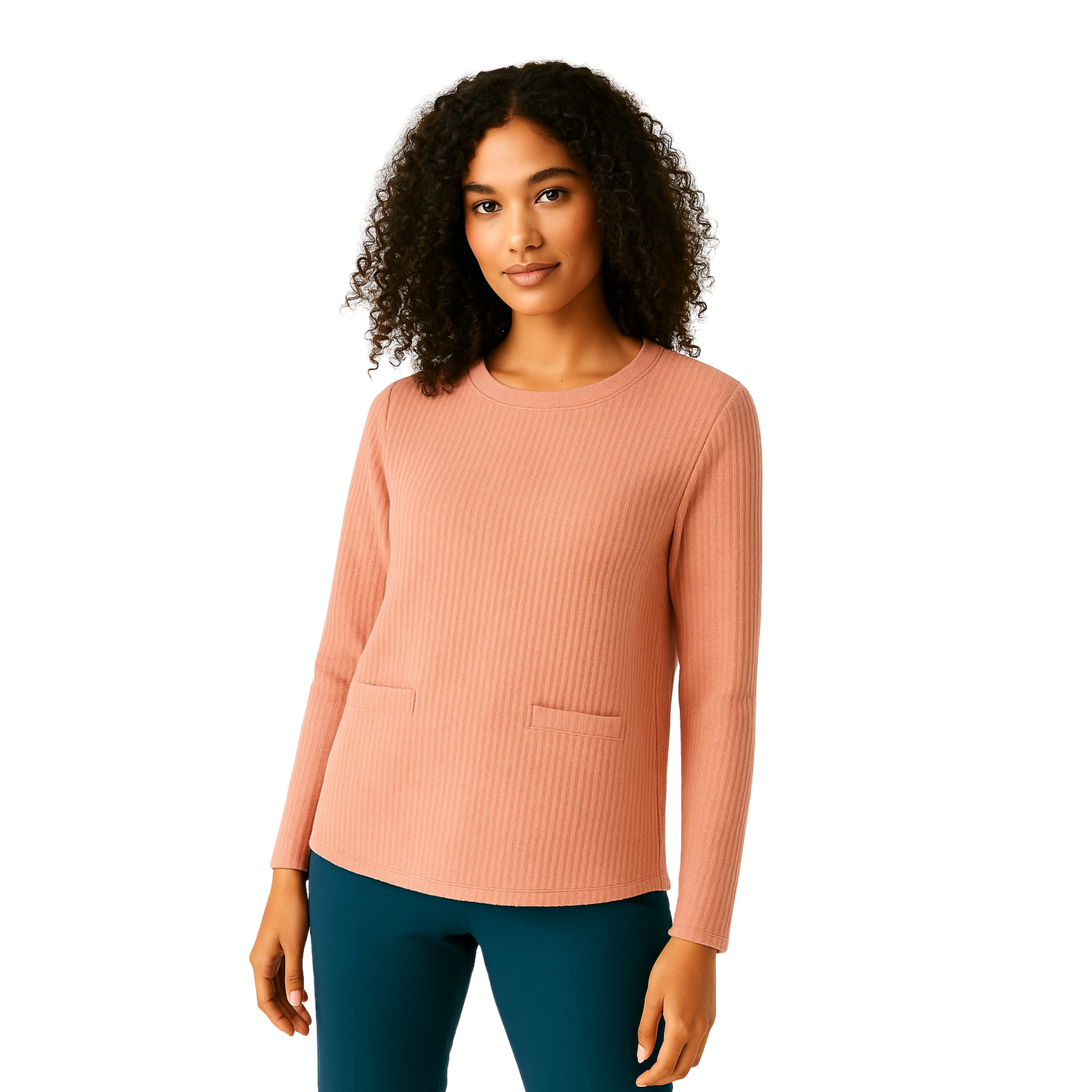 Maison Boutique Nouveautés Haut à manches longues côtelé à col rond