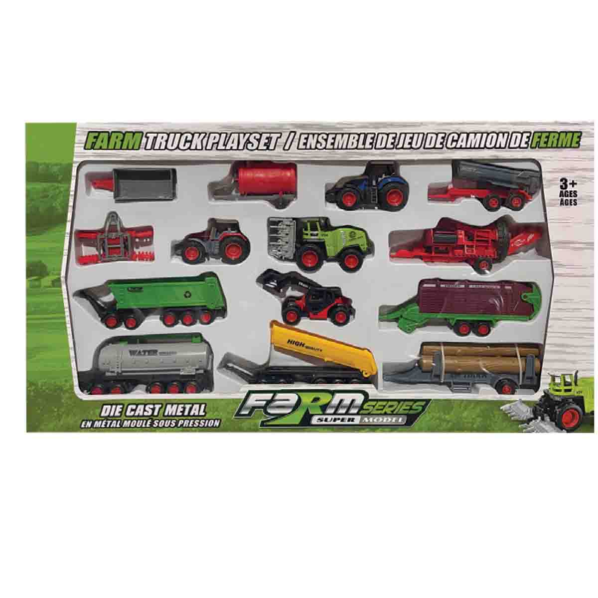 A farm vehicles set typically includes various toy vehicles that are commonly used on a farm.This set is designed to spark children's imagination and create a fun and educational play experience centered around farm activities and operations. It is a great way for kids to learn about agriculture and the different vehicles and equipment used on a farm.