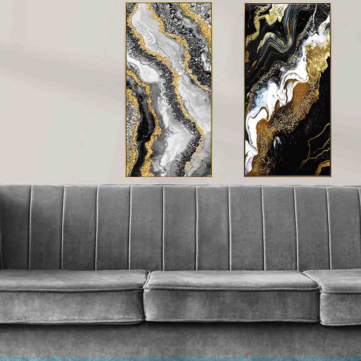 La toile abstraite mesure 72 x 142 x 4,5 cm, ce qui en fait une œuvre d'art remarquable et de grande taille qui peut rehausser l'attrait esthétique de n'importe quelle pièce. Son design abstrait ajoute une touche de créativité et de style à votre espace, tandis que ses dimensions en font un point focal de votre décor. Ajoutez cette toile abstraite à votre collection pour apporter une touche contemporaine et artistique à votre maison ou à votre bureau.