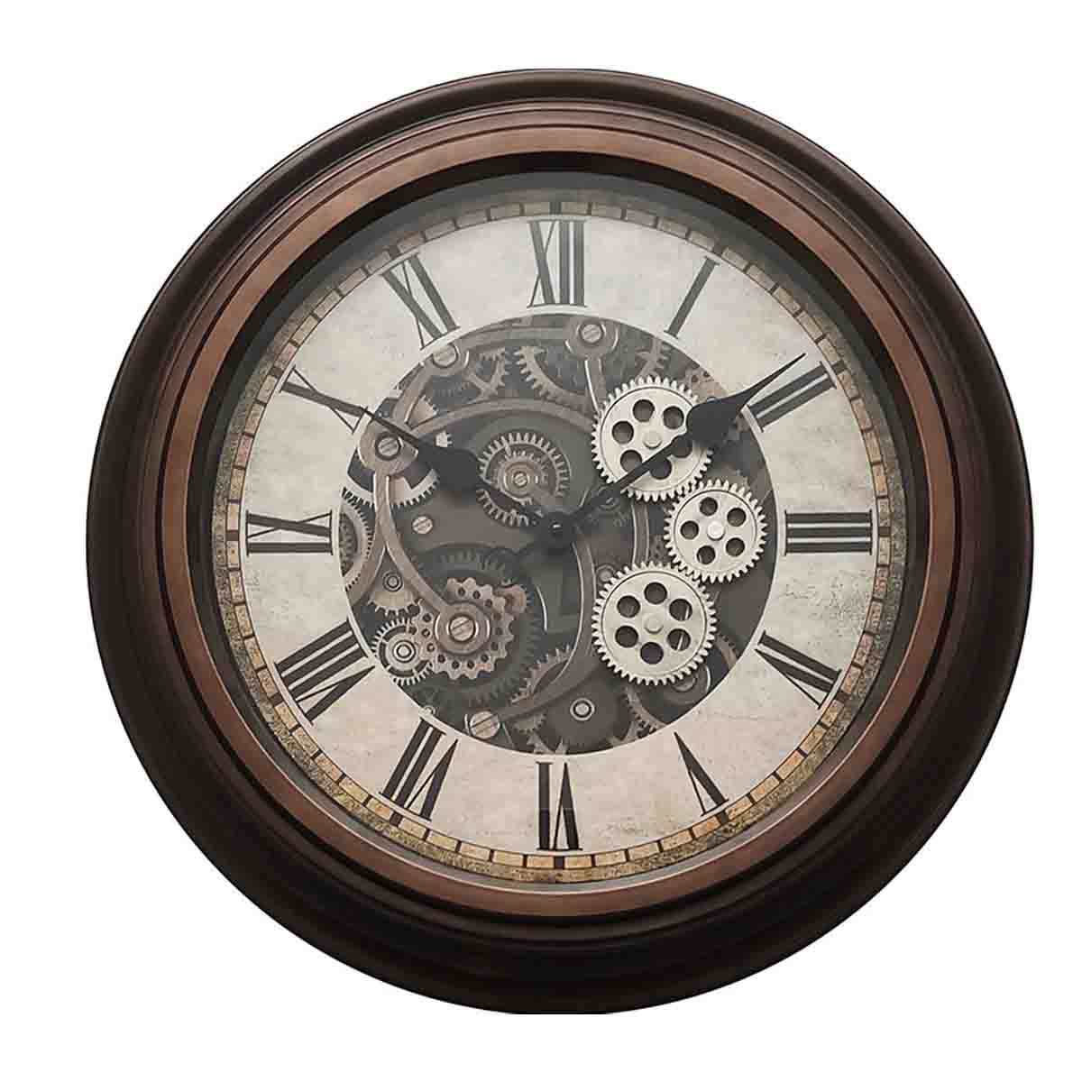 Lauren Taylor - Grande horloge murale en bois de 52,5 cm avec engrenages mobiles
