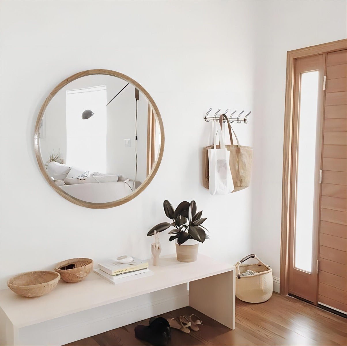 Le miroir rond à cadre en bois naturel est un miroir élégant et fonctionnel conçu pour ajouter une touche d'élégance à n'importe quel espace. Ce miroir de forme ronde ajoute un élément unique et accrocheur à votre décor. Le design circulaire offre un point focal visuellement attrayant et peut créer l'illusion de plus d'espace dans une pièce. Sa taille polyvalente lui permet d'être utilisé dans différentes zones de votre maison, telles que l'entrée, le salon, la chambre ou la salle de bains.
