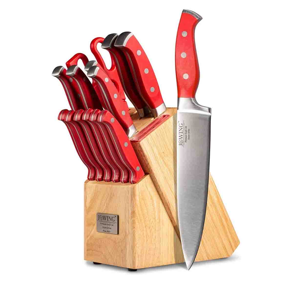 L'ensemble de 15 couteaux de cuisine est une collection complète pour tous vos besoins en matière de tranchage et de découpage. L'ensemble comprend les éléments essentiels, tels qu'un couteau de chef, un couteau à pain et un couteau à découper pour simplifier la préparation des repas. Les couteaux et l'aiguiseur sont fabriqués en acier inoxydable pour garantir une longue durée d'utilisation sans perdre leur tranchant. Ils contribuent également à la sécurité alimentaire en réduisant la contamination des aliments grâce à leur facilité de lavage. Disponible en 2 couleurs (Rouge, Noir)