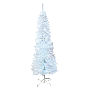 Arbre blanc élancé de 2,1 m, éclairé à l'avance, avec 200 ampoules LED de 5 mm d'un blanc pur