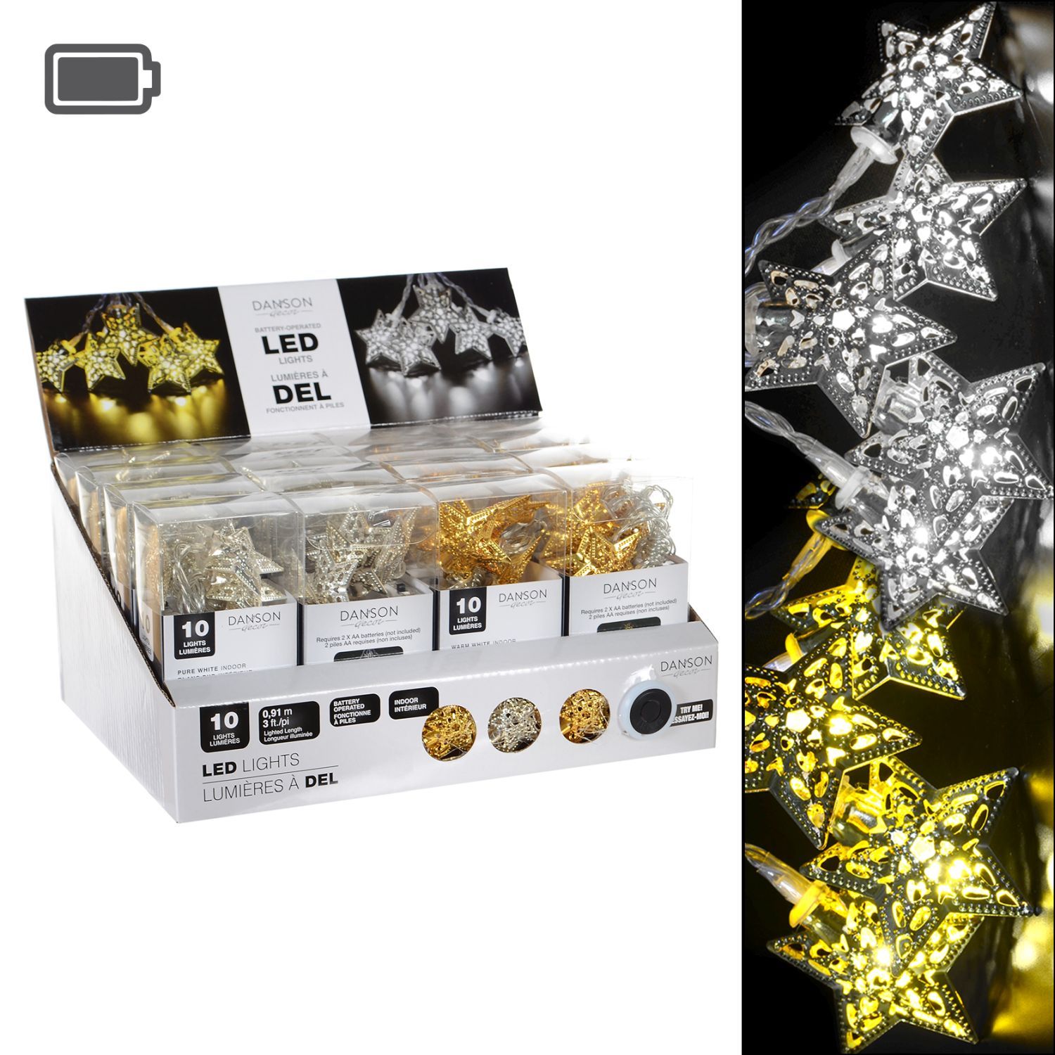 Jeu De 10L Del, Étoile Métal, Pile,2Asst | 2 Asst B/O 10L Led Metal Star Light Set
