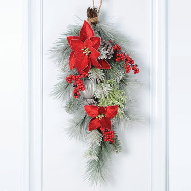 Larme Déco. De Pin Givré 28"-Poinsettia | 28" Frosted Mixed Pine Teardrop Swag