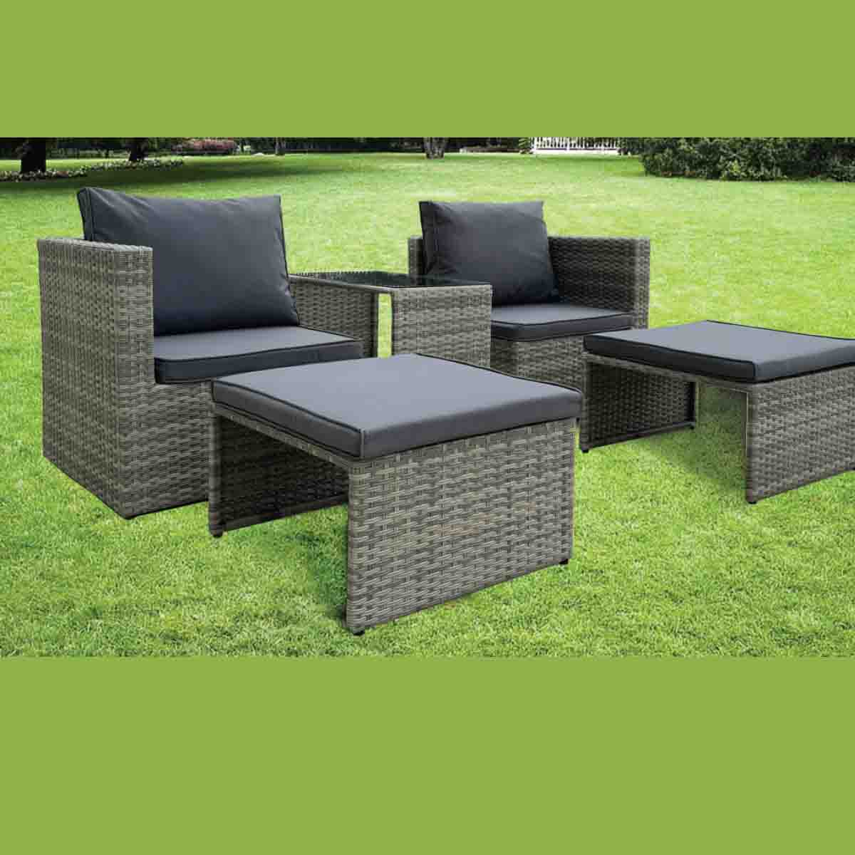 Ensemble 5 pièces en rotin gris avec coussins Coussins anthracite
