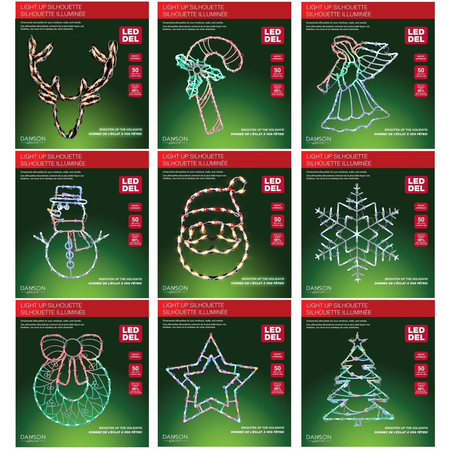 Ajoutez une touche festive à votre décoration de Noël avec ces guirlandes lumineuses LED en forme de silhouette. Chaque modèle est doté de 150 LED lumineuses disposées en formes classiques de saison, telles que des couronnes, des étoiles, des cloches, des flocons de neige, des décorations et des sapins. Parfaites pour décorer vos fenêtres, vos murs ou vos espaces extérieurs, elles créent une lueur joyeuse qui sublime la magie des fêtes.