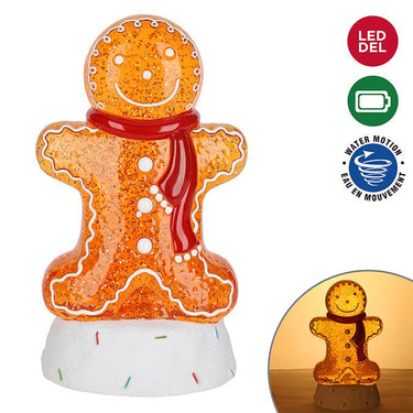 Ajoutez une touche de gaieté festive avec ce charmant bonhomme en pain d'épices en forme de boule à eau, orné de paillettes tourbillonnantes et d'une lumière LED blanc chaud. Mesurant 24,6 cm de haut , cette ravissante décoration de Noël capture la joie des fêtes avec son design ludique en pain d'épices et ses touches de houx.