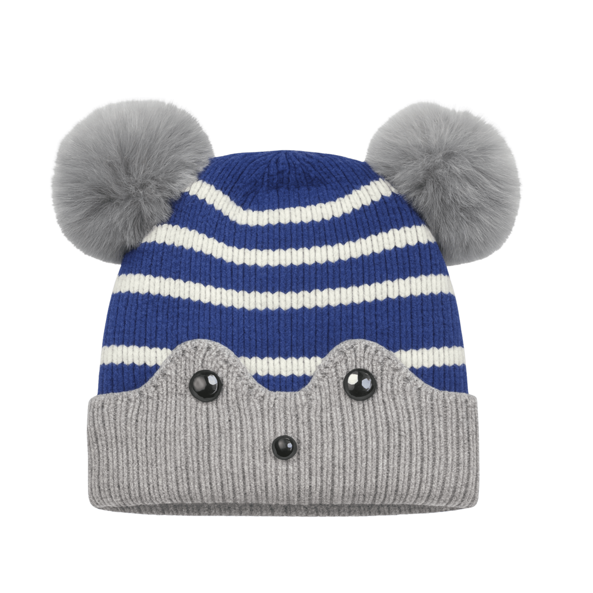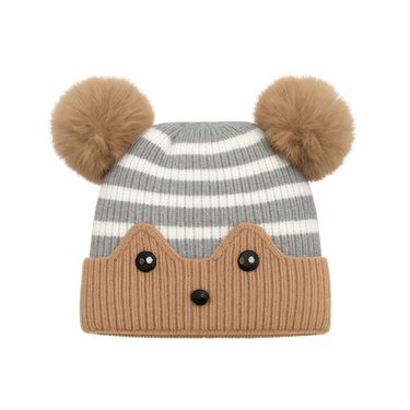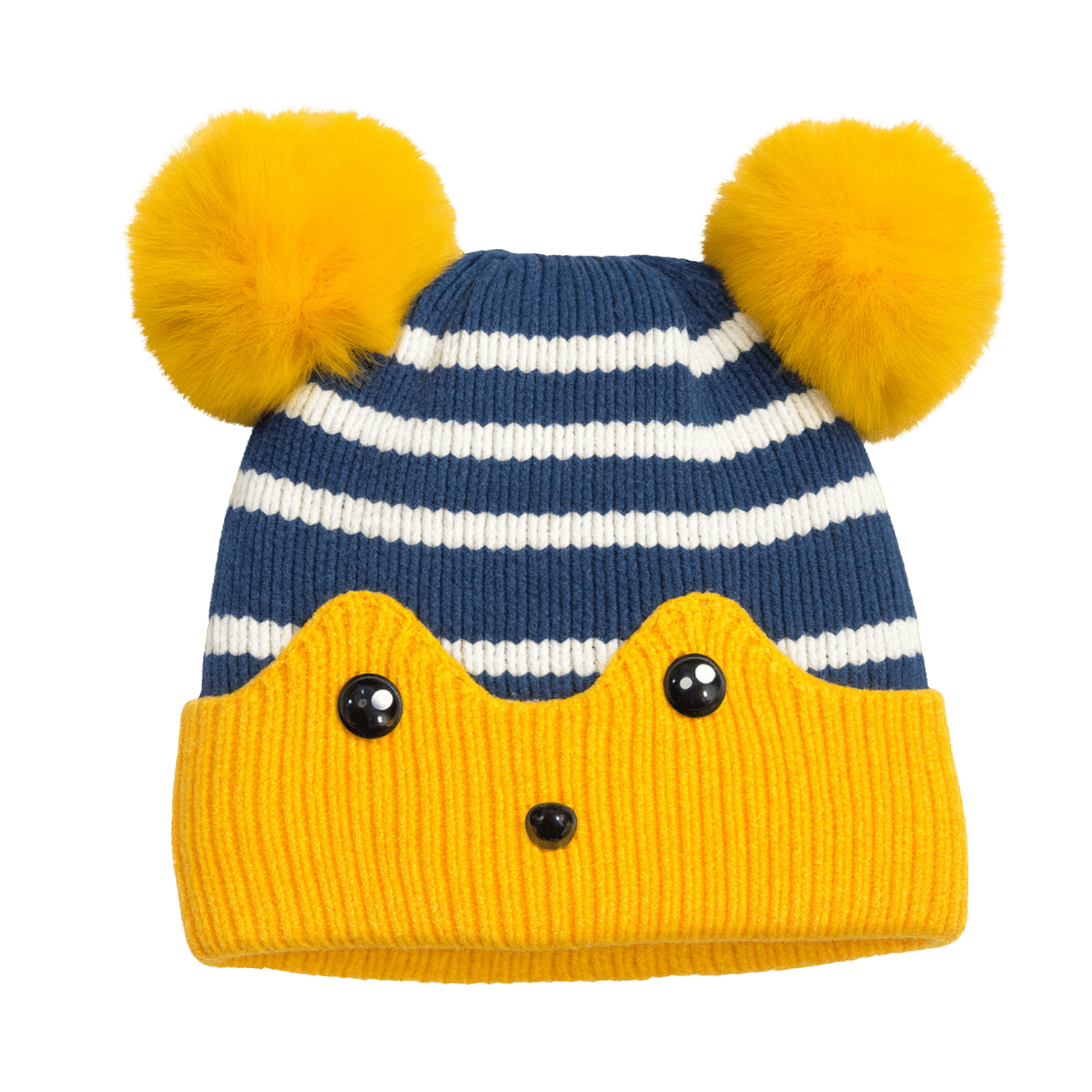 Bonnet bébé en tricot rayé avec oreilles et pompons
