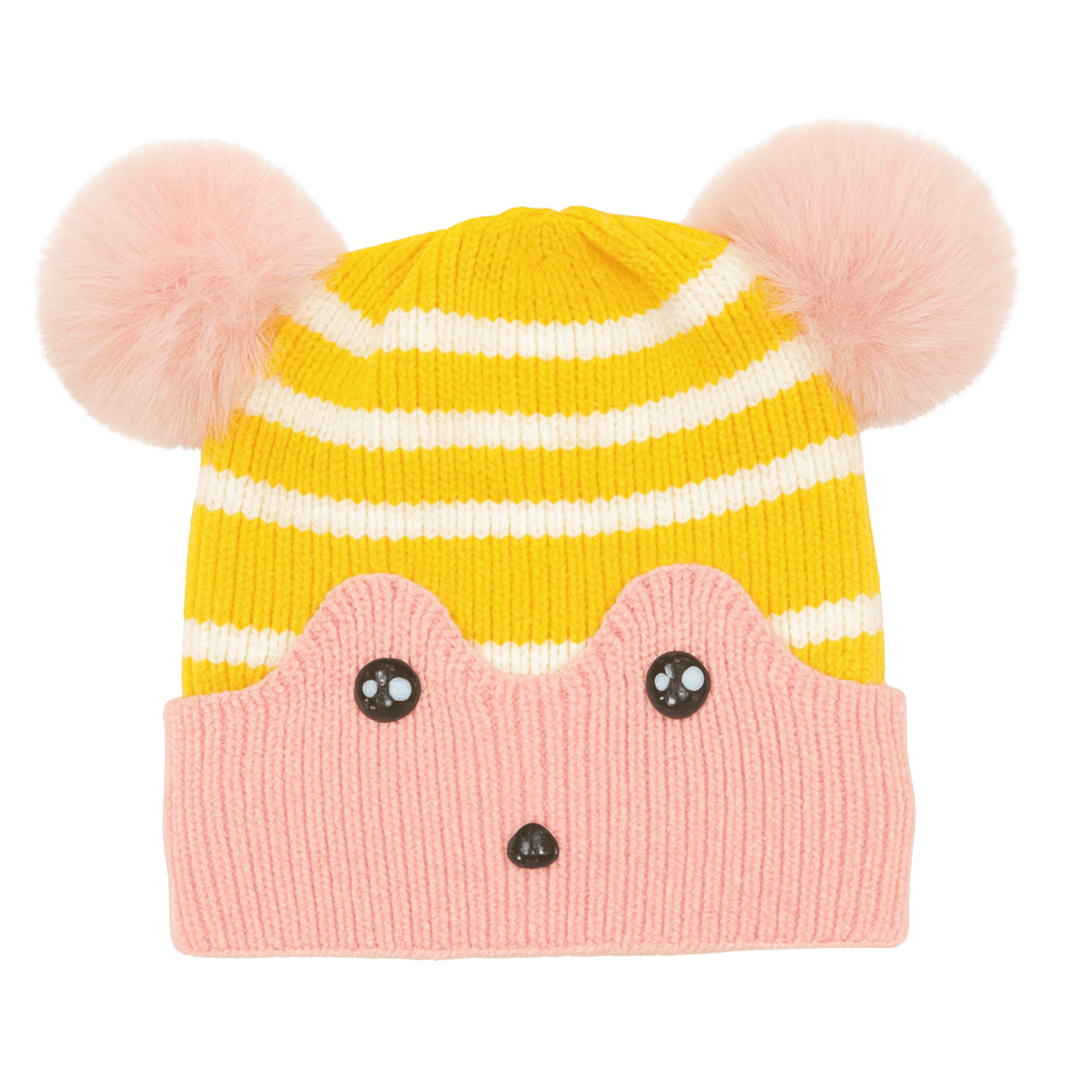 Maison Bonnet bébé en tricot rayé avec oreilles et pompons