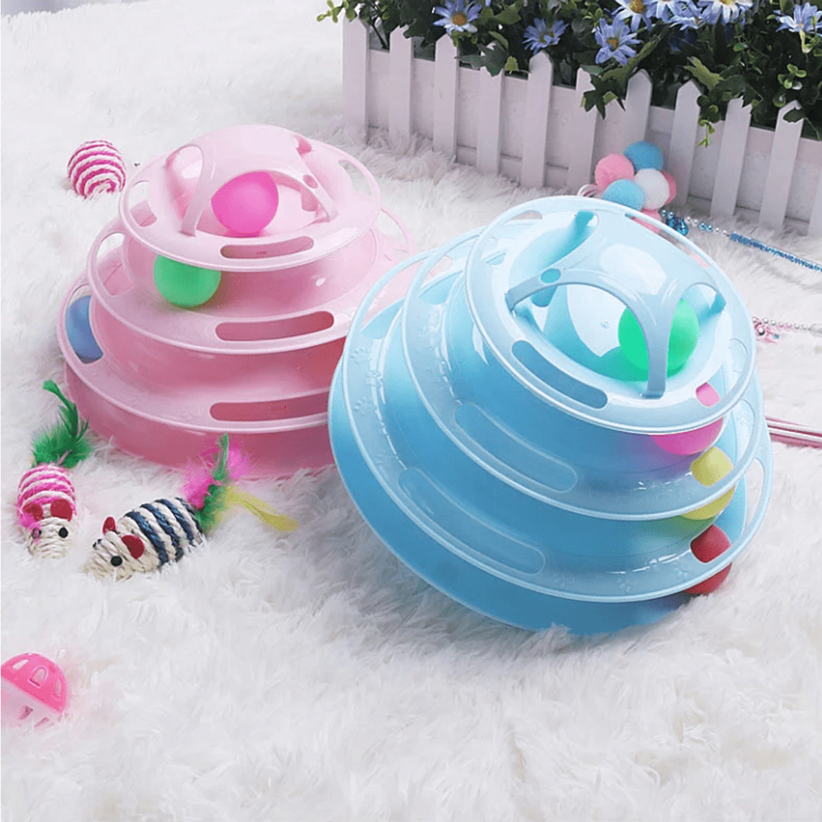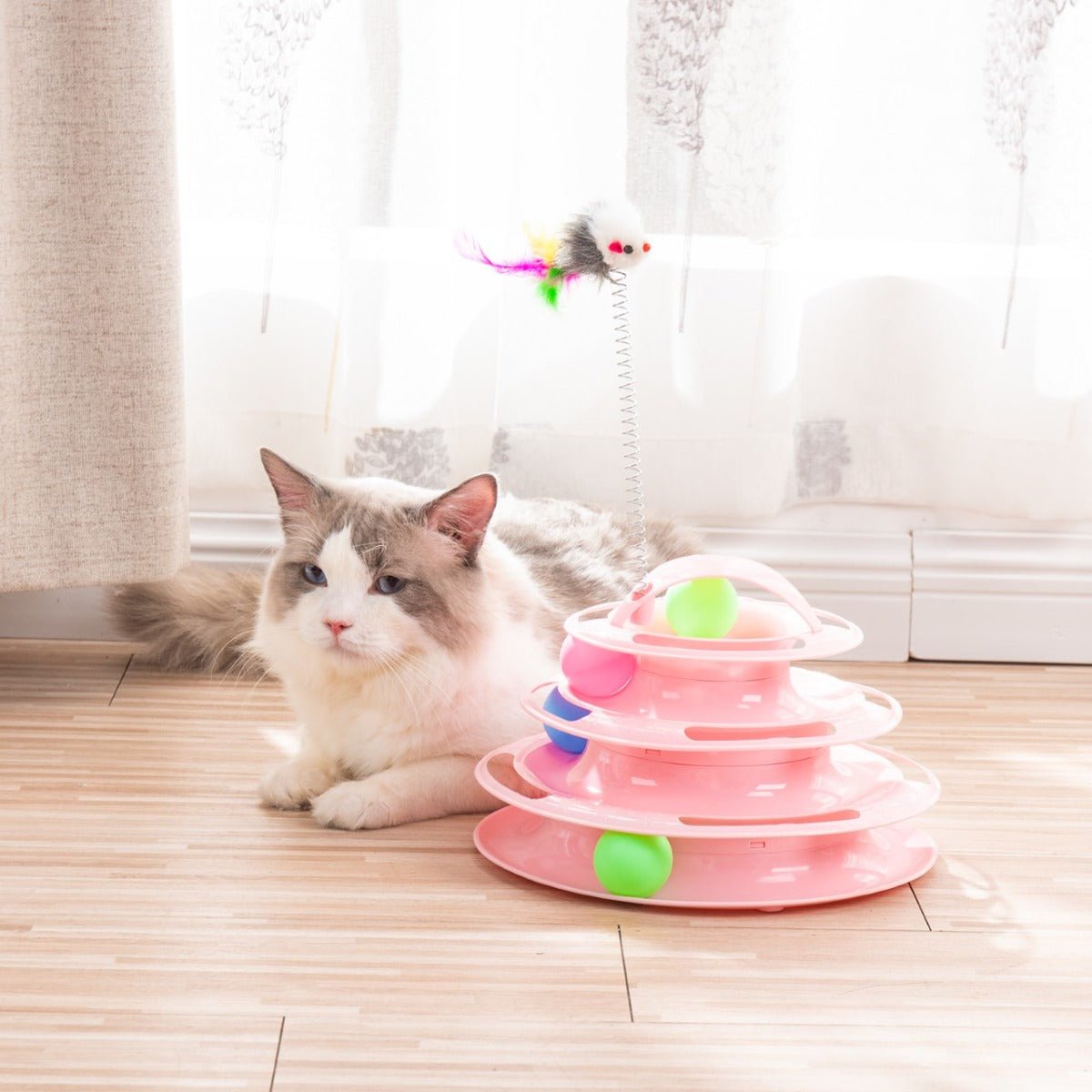 Les chats peuvent frapper les balles et les faire tomber autour du jouet.