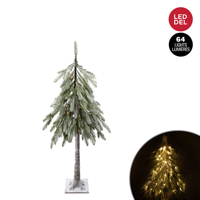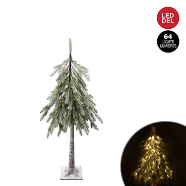 Sapin enneigé pré-éclairé de 1,2 m – 64 LED blanc chaud