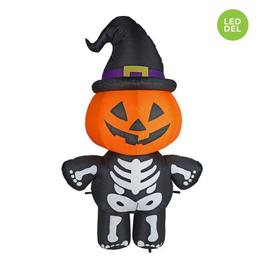 SQUELETTE GONFLABLE LUMINEUX À LED EN FORME DE CITROUILLE, 1,22 m DE HAUT