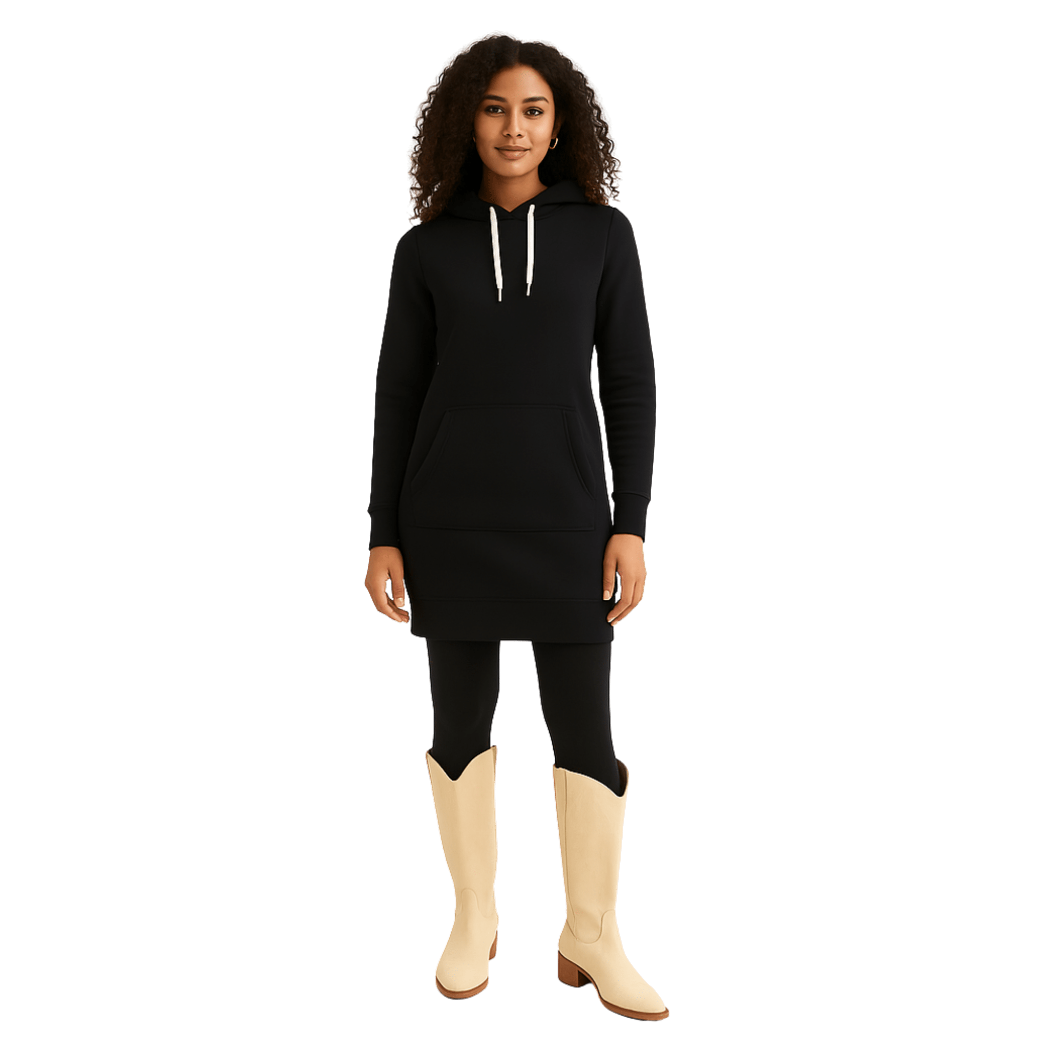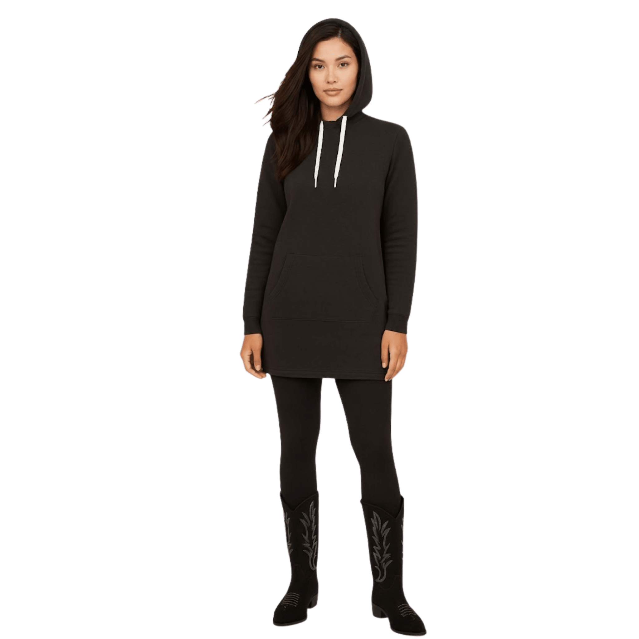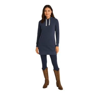 Alliant confort et style décontracté, cette robe chandail à capuchon est un incontournable du quotidien. Sa coupe droite et sa matière douce en font une pièce facile à porter, seule ou en superposition. Le capuchon à cordons ajustables et la poche kangourou ajoutent une touche fonctionnelle, tandis que la longueur allongée offre une allure moderne et flatteuse. Parfaite avec des leggings ou des bottes pour un look sans effort.