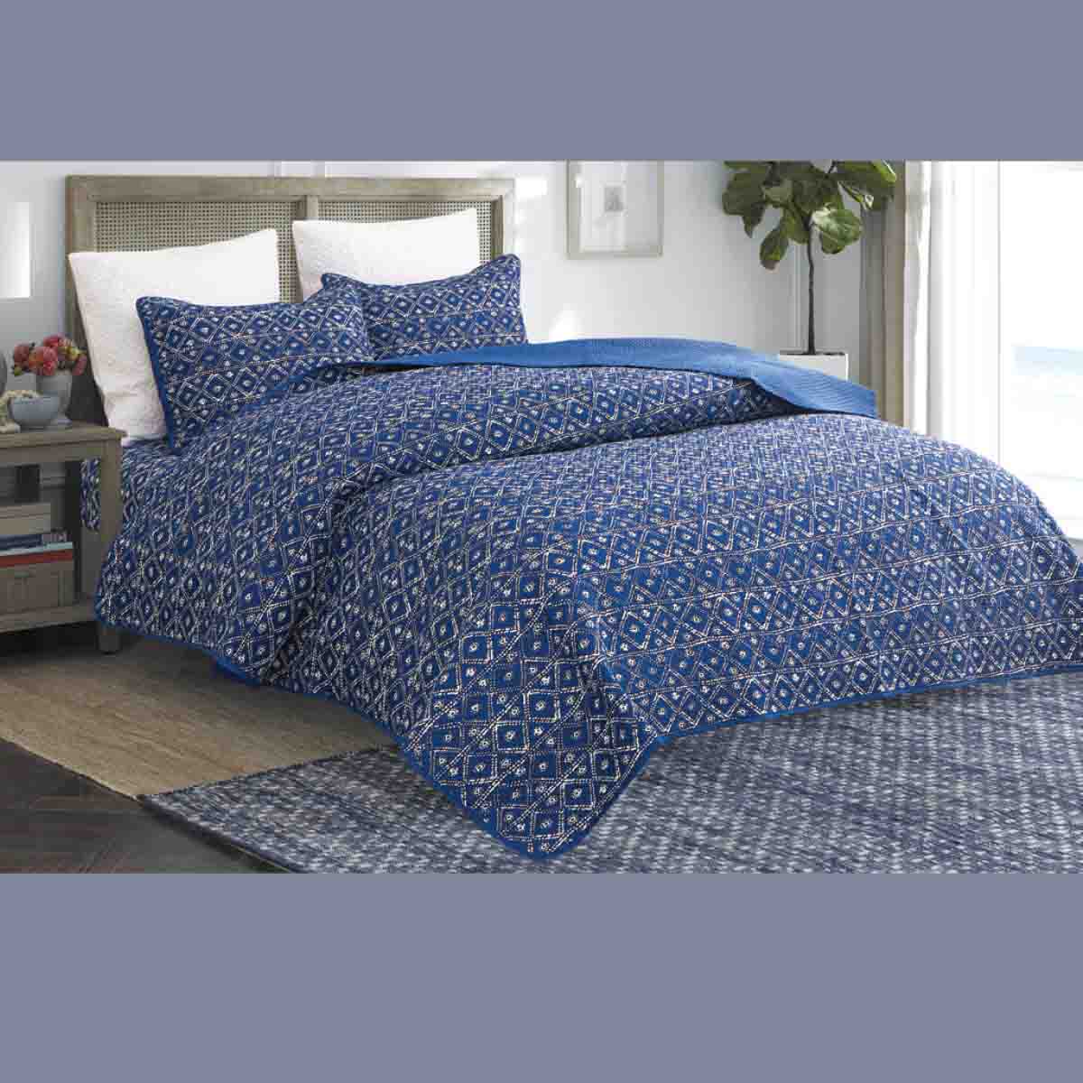 The Indigo Tribal Quilt set by Lauren Taylor is a versatile & classic design. Made of 100% polyester, this set is lightweight yet durable, which makes it great for families or dorm rooms. This design is available in 3 sizes -Full, Queen and King.