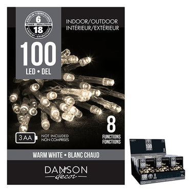100 LUMIÈRES À PILES 5 MM POUR INTÉRIEUR/EXTÉRIEUR - Blanc chaud