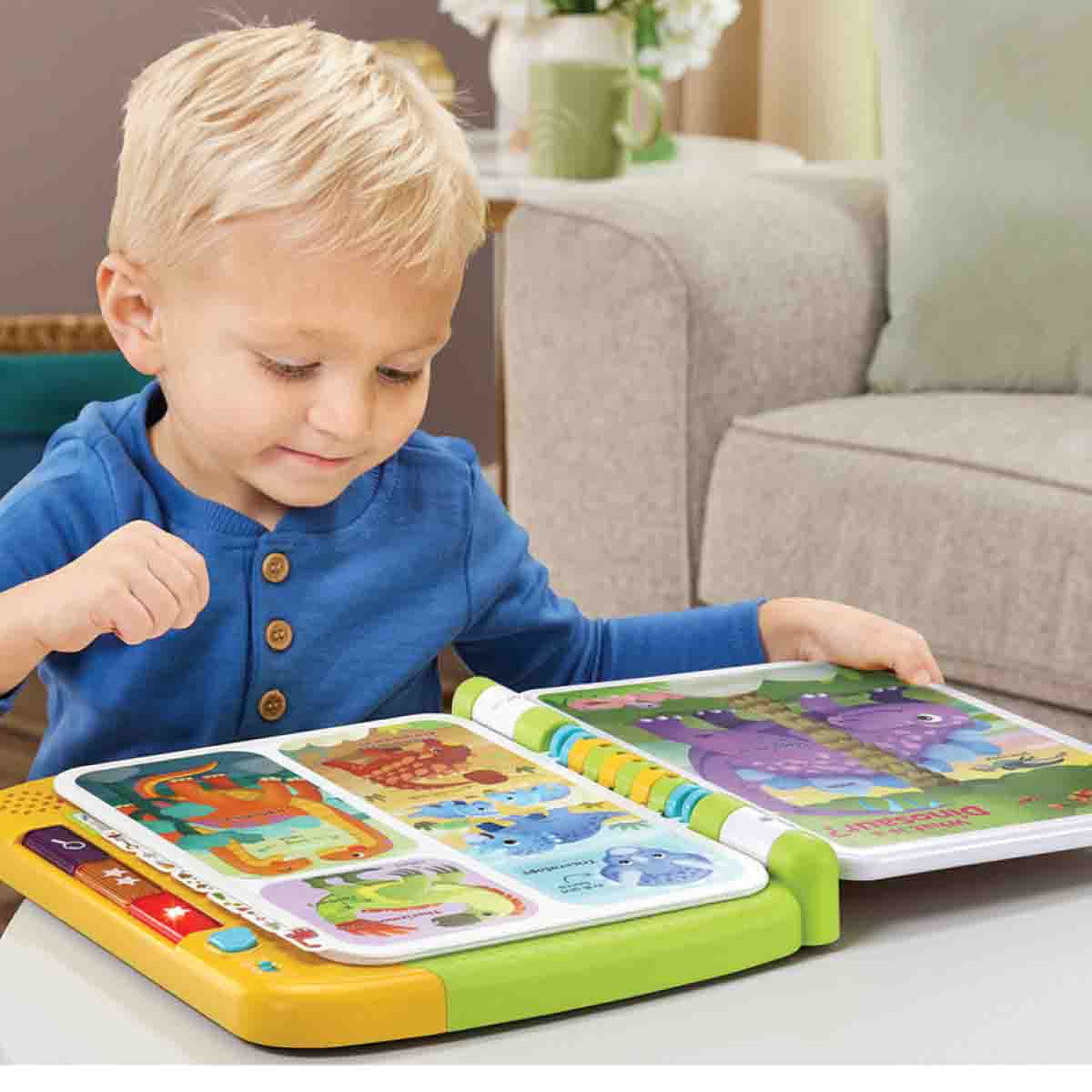 The LeapFrog Touch & Learn Dinosaur Book is an interactive and educational toy that takes kids on an engaging journey through the world of dinosaurs. With touch-sensitive pages, fun facts and it offers an exciting way for children to learn about these ancient creatures while developing their language and listening skills.This interactive book not only supports kids curiosity about dinosaurs but also aids in their language development, listening skills, and interest in science