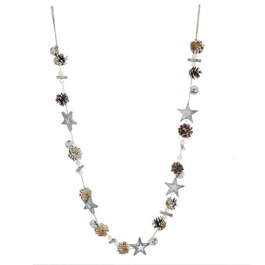 Guirlande d'étoiles, de cloches et de pommes de pin en bois – 1,68 m (blanc/beige)