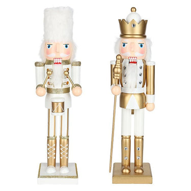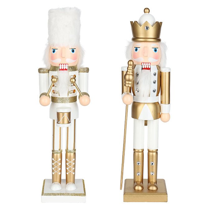 Wooden Soldier Nutcracker – 38cm (White & Gold, 2 Assorted: Drum & Staff) - Magasins Hart | Hart Stores
