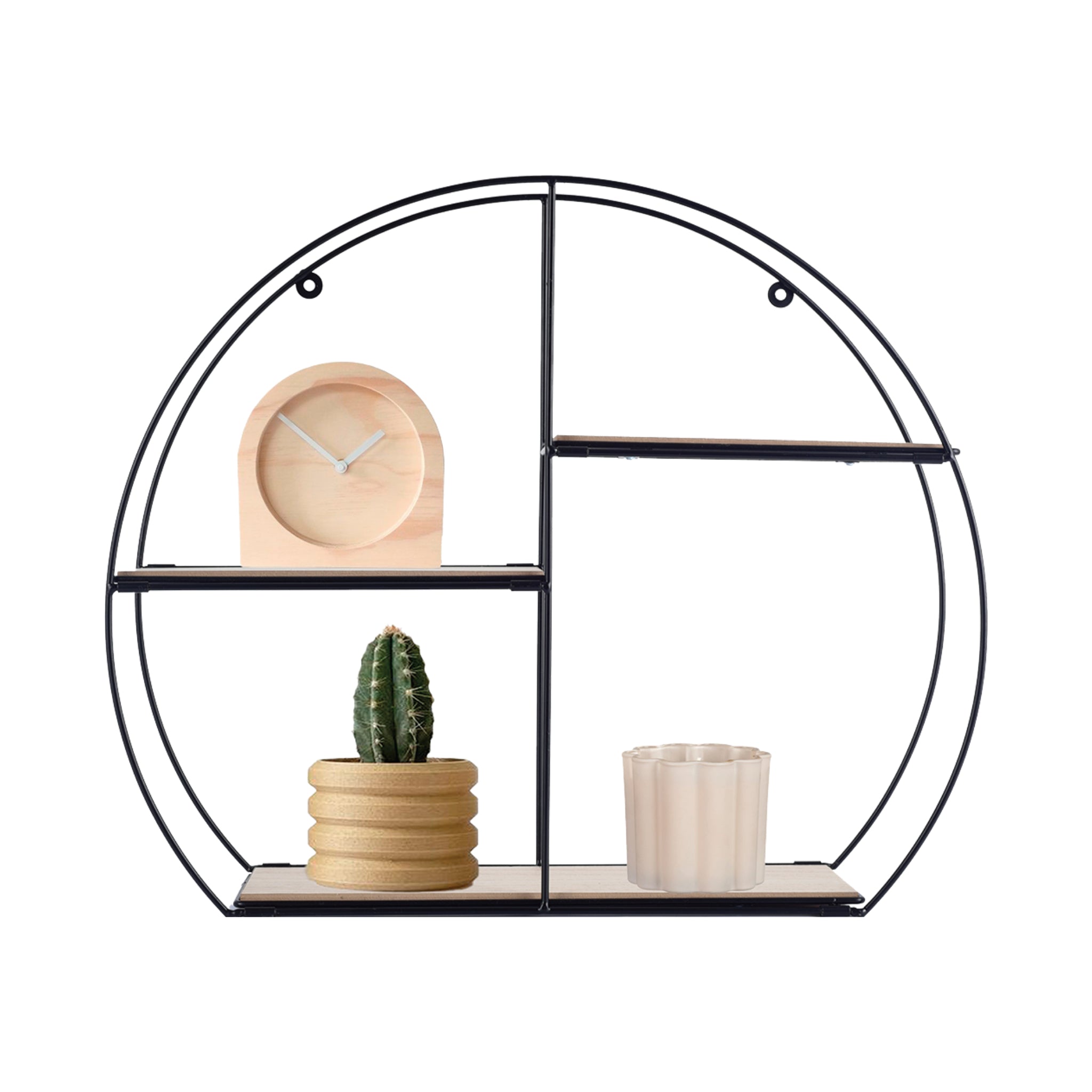 Son format circulaire divisé en compartiments apporte du rythme et de l’équilibre à vos murs, tout en mettant en valeur plantes, bougies ou accessoires.