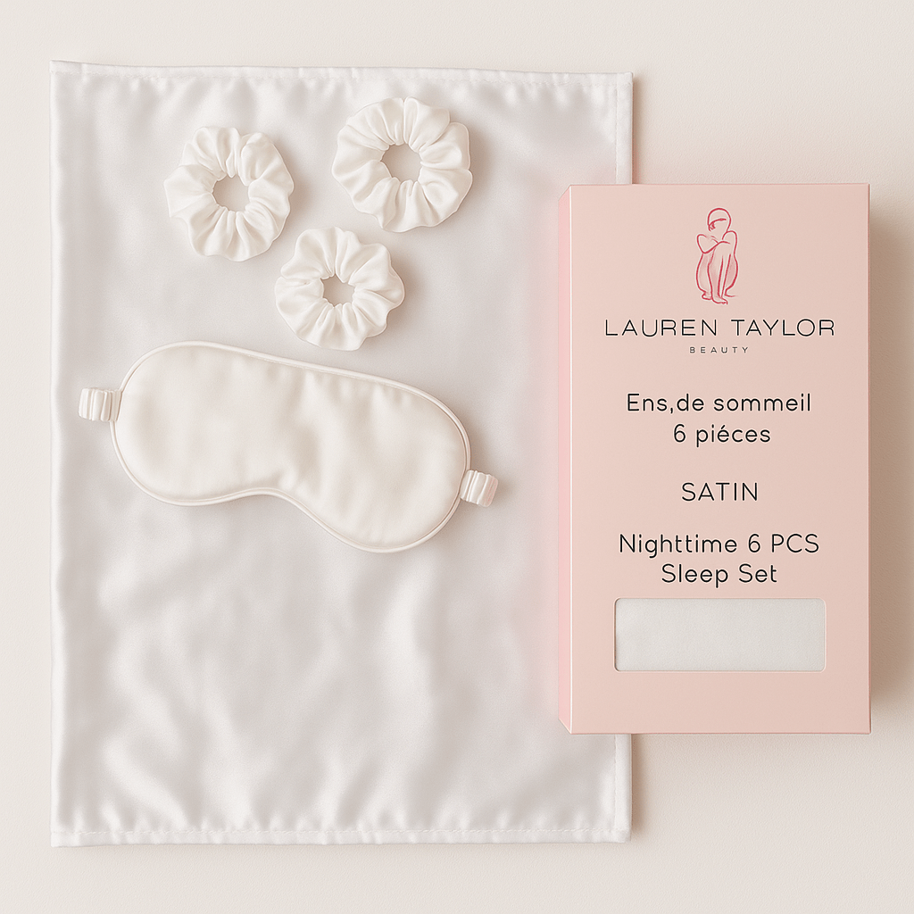 Offrez-vous le luxe absolu des nuits paisibles avec notre Ensemble de Sommeil en Satin. Conçu pour sublimer votre routine du coucher, cet ensemble de 6 pièces comprend un masque pour les yeux ultra-doux, une taie d’oreiller assortie et de jolies chouchous en satin. Sa texture soyeuse réduit la friction, protégeant vos cheveux et votre peau tout en favorisant un sommeil réparateur. Parfait pour vos moments de détente ou comme cadeau raffiné, cet ensemble allie confort et élégance.