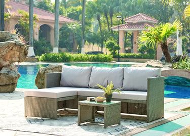 Profitez des moments passés en famille au bord de la piscine ou sur votre terrasse grâce à ce canapé trois pièces. Chaque pièce est construite pour durer, avec des matériaux de qualité et un tissu résistant aux UV, conçu pour résister à la décoloration, à l'usure et à la moisissure. Choisissez cet ensemble de mobilier d'extérieur polyvalent pour n'importe quelle pièce extérieure de votre maison. Disponible en 3 couleurs
