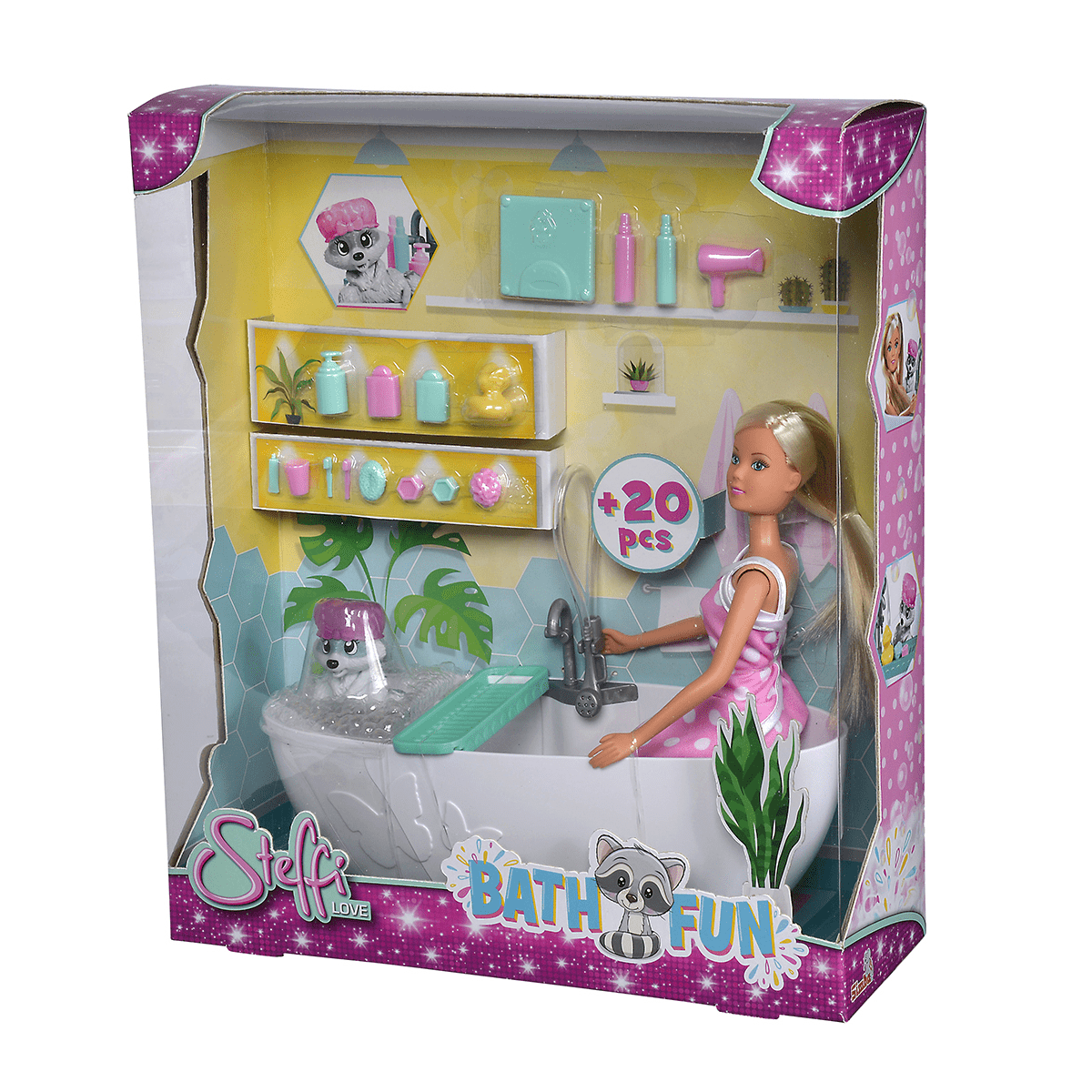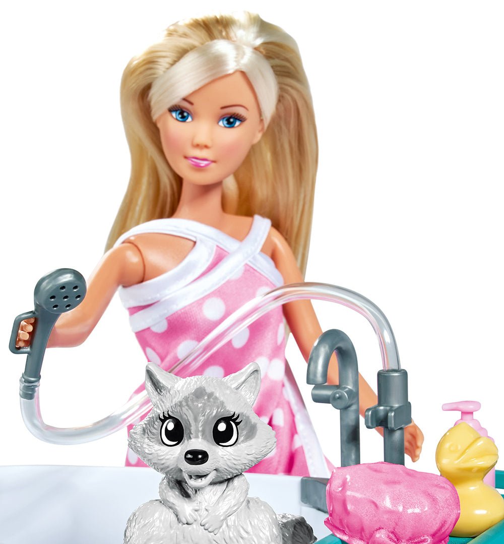Comprend : Steffi Love, 1 raton laveur, 1 baignoire et de nombreux accessoires de bain