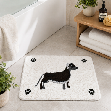 Apportez une touche ludique et élégante à votre salle de bain avec ce tapis de bain texturé orné d’un charmant motif de chien. Sa surface douce et moelleuse procure un confort optimal sous les pieds tout en ajoutant une note décorative moderne. À la fois pratique et esthétique, il s’intègre parfaitement à votre quotidien et rehausse instantanément votre espace.