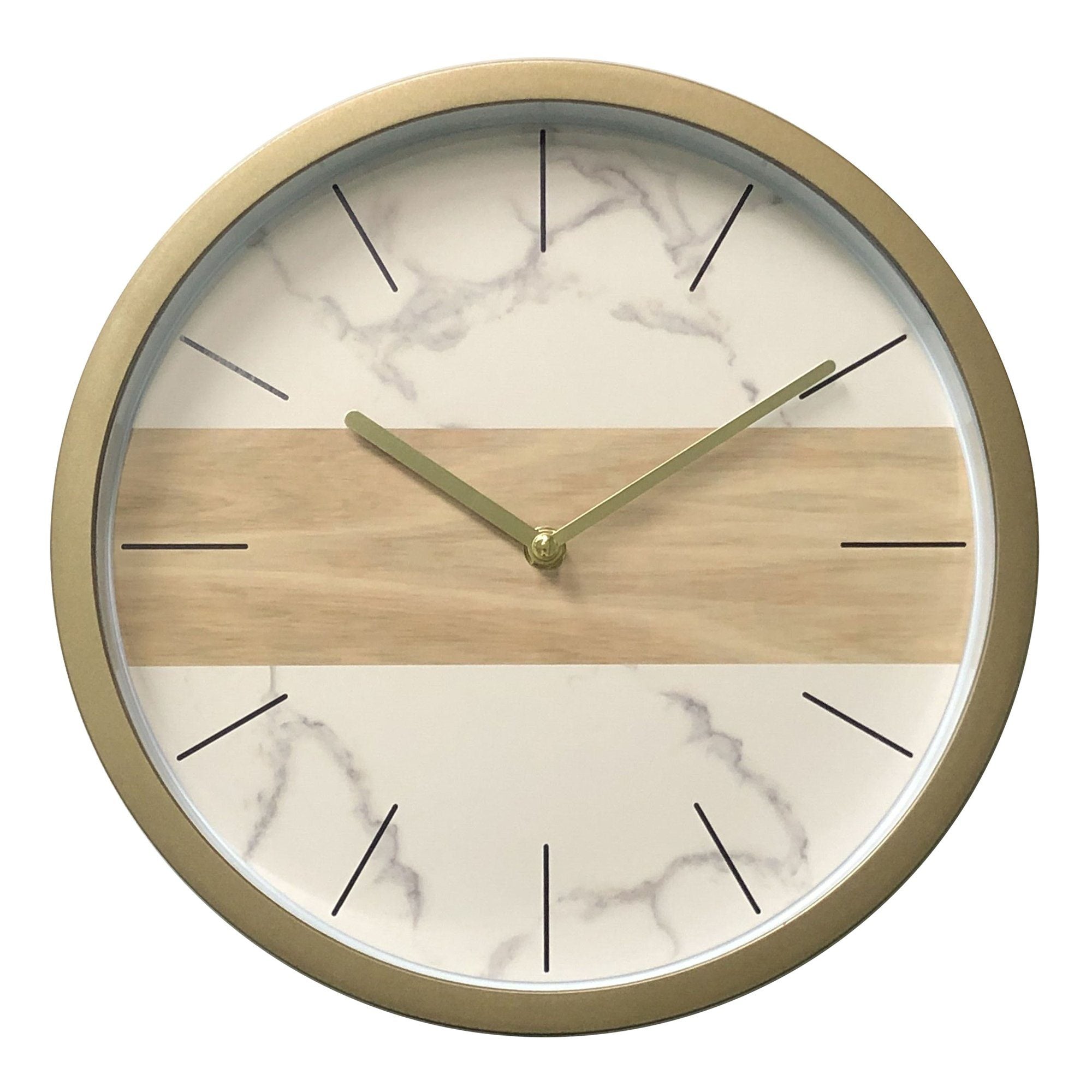 Wall Clock - White Marble & Natural Wood Look - 12'' - Magasins Hart | Hart Stores