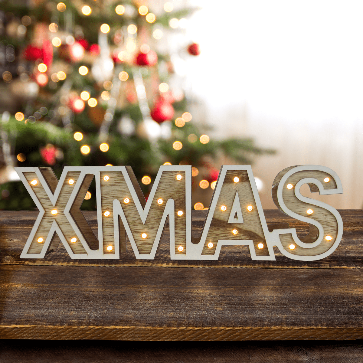 Ce tableau Xmas Led XMAS Wood Look 38x11 est le moyen idéal d'apporter un peu de joie de Noël dans votre maison.