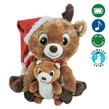 Animated Plush Reindeer Mom & Baby with Music – 21cm