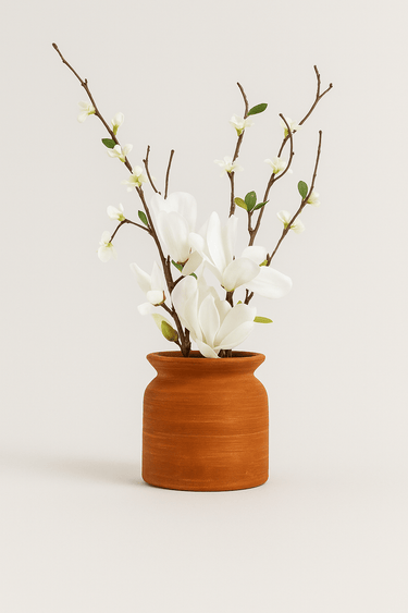 Bring timeless elegance to your home with these assorted floral arrangements in a rustic vase. Each arrangement features delicately crafted flowers and branches, offering a natural and realistic look without the upkeep of real plants. Perfect for decorating living rooms, dining tables, entryways, or offices, these 20cm arrangements instantly brighten any space with charm and sophistication.
