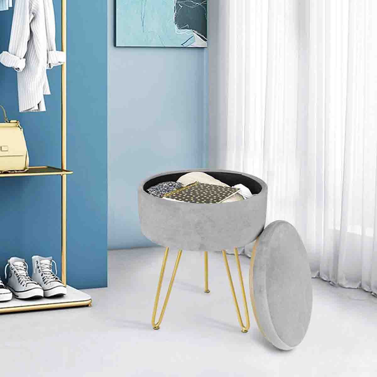 Atelier Du Nord - Velvet Ottoman With Storage And Gold Metal