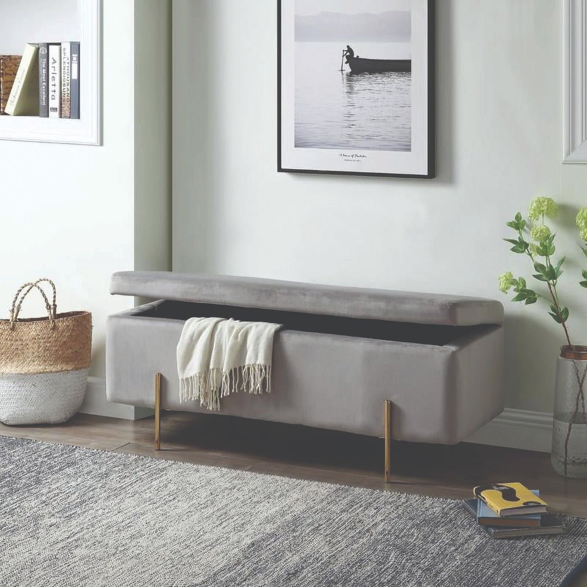 The Atelier Du Nord Velvet Storage Bench with Gold Metal Leg is a luxurious and functional piece of furniture that adds style and storage to any room.With its combination of style and functionality, the Atelier Du Nord Velvet Storage Bench with Gold Metal Leg is a great choice for an entryway, living room, or bedroom.This Bench also has a sturdy Metal legs that provides durability and stability, with a minimalist design to complement a wide range of interior styles.The bench is available in 2 different colors, allowing you to match it with your existing decor.